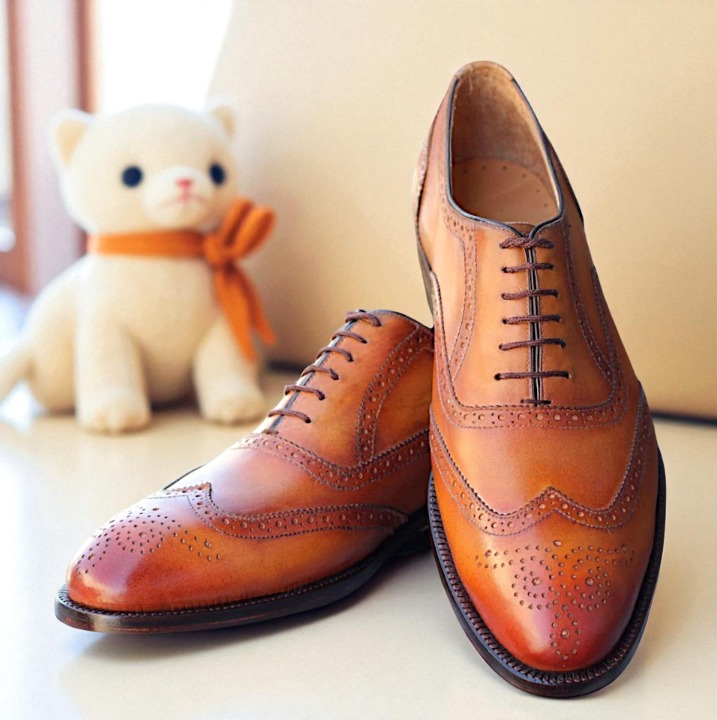 Crafted Leather Classic Brown Leather Wingtip Oxford Dress Shoes