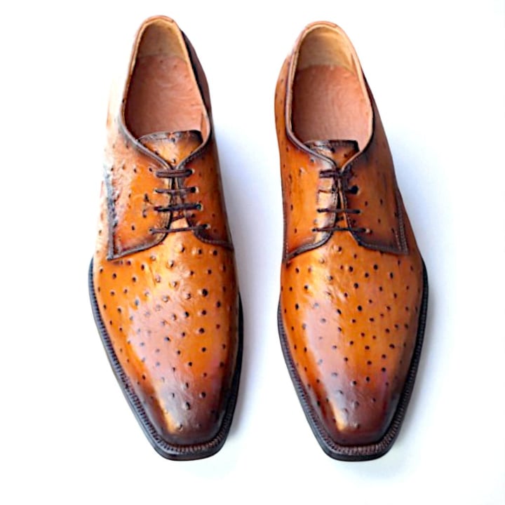 Crafted Leather Classic Brown Ostrich Leather Oxford Lace up Dress Shoes