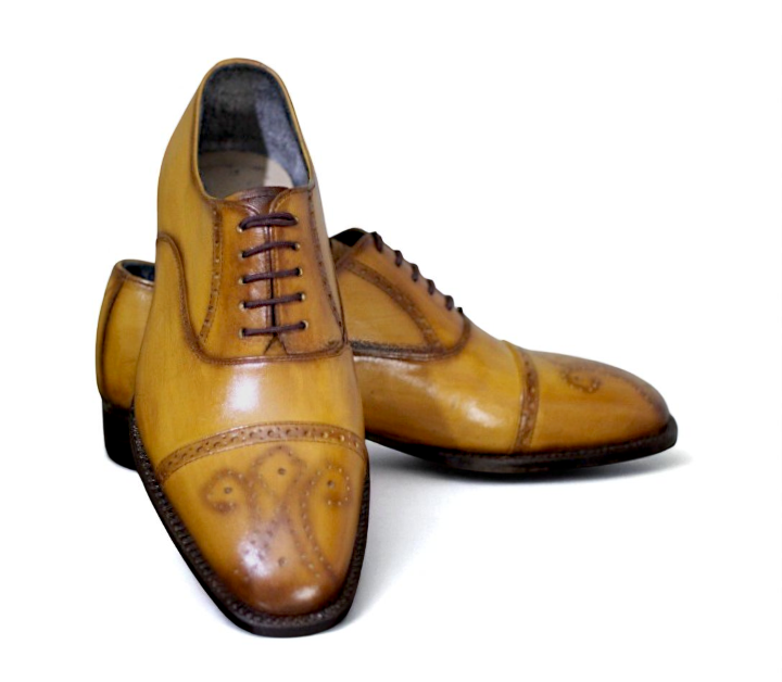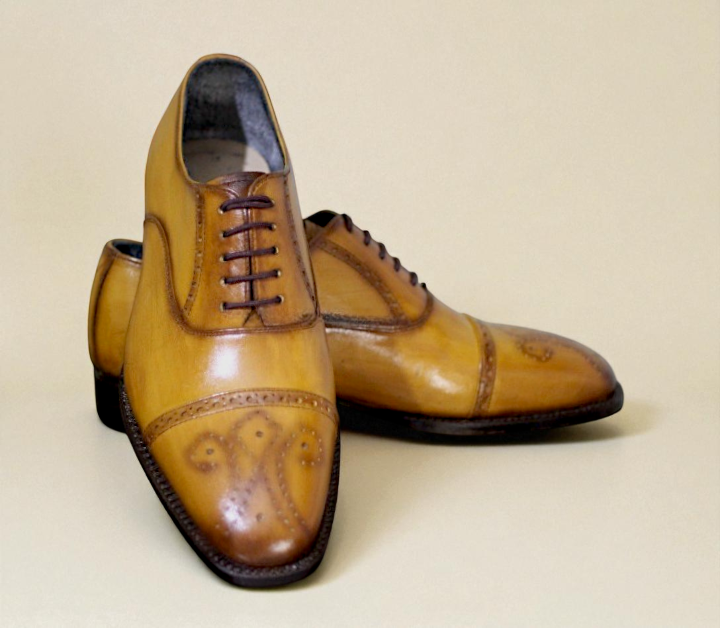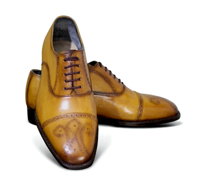 Crafted Leather Classic Men Tan Leather Oxford Lace up Dress Shoes