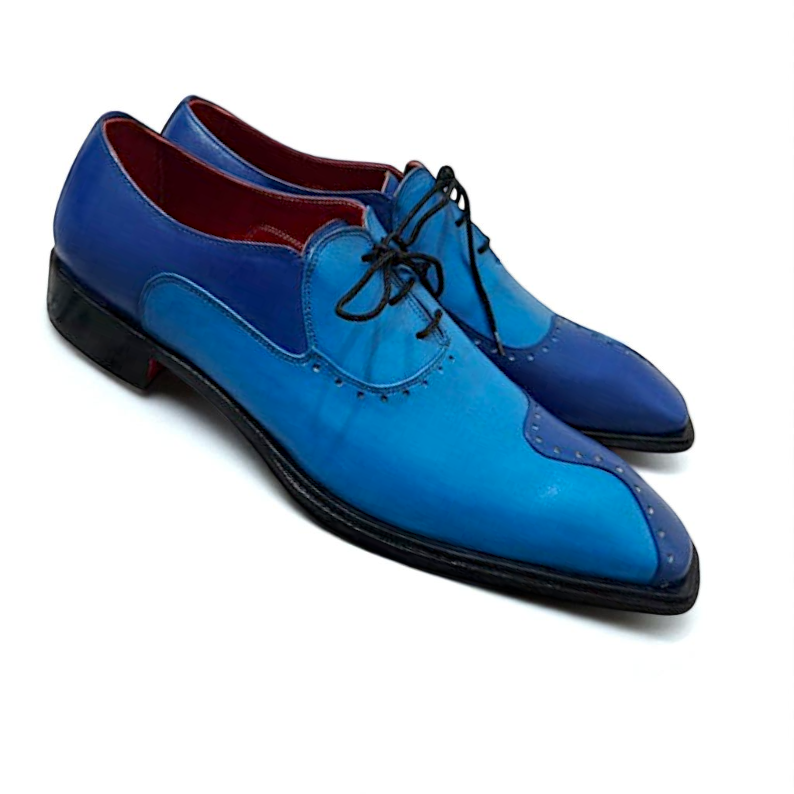 Crafted Leather Classic Men Blue Leather Oxford Lace up Dress Shoes