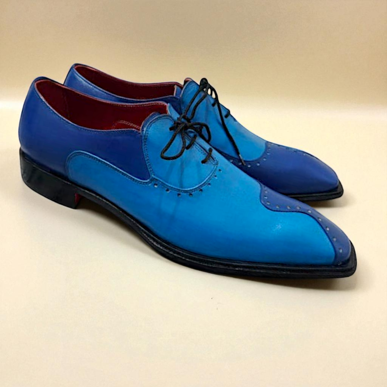 Inner: Soft Leather  Sole: Leather  Gender : Male Heel: Leather Color: Blue Style:  Dress Shoes Lining Soft Calf Leather Lining Totally Hand stitched Manufacturing time 7-10 business days If you can’t find your Size/Colorjust send us message we will make for you.