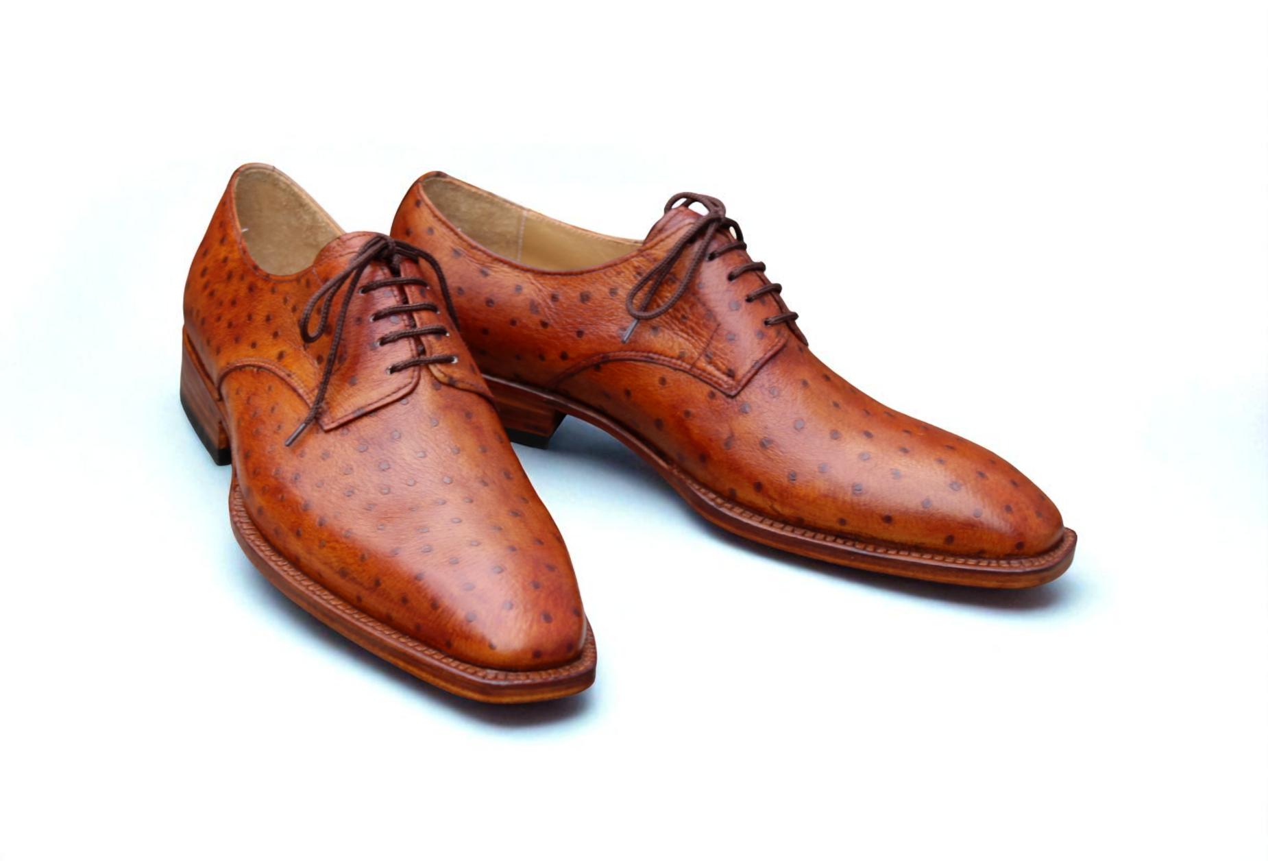 Crafted Leather Classic Brown Ostrich Leather Lace up Dress Shoes