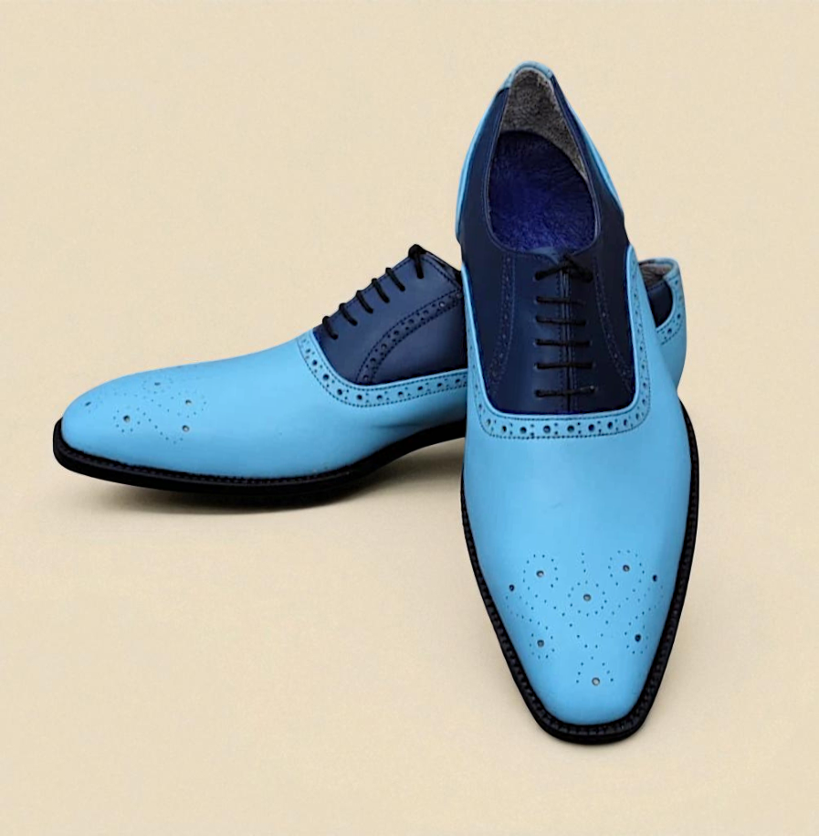 Crafted Leather Classic Blue Leather Oxford Dress Shoes