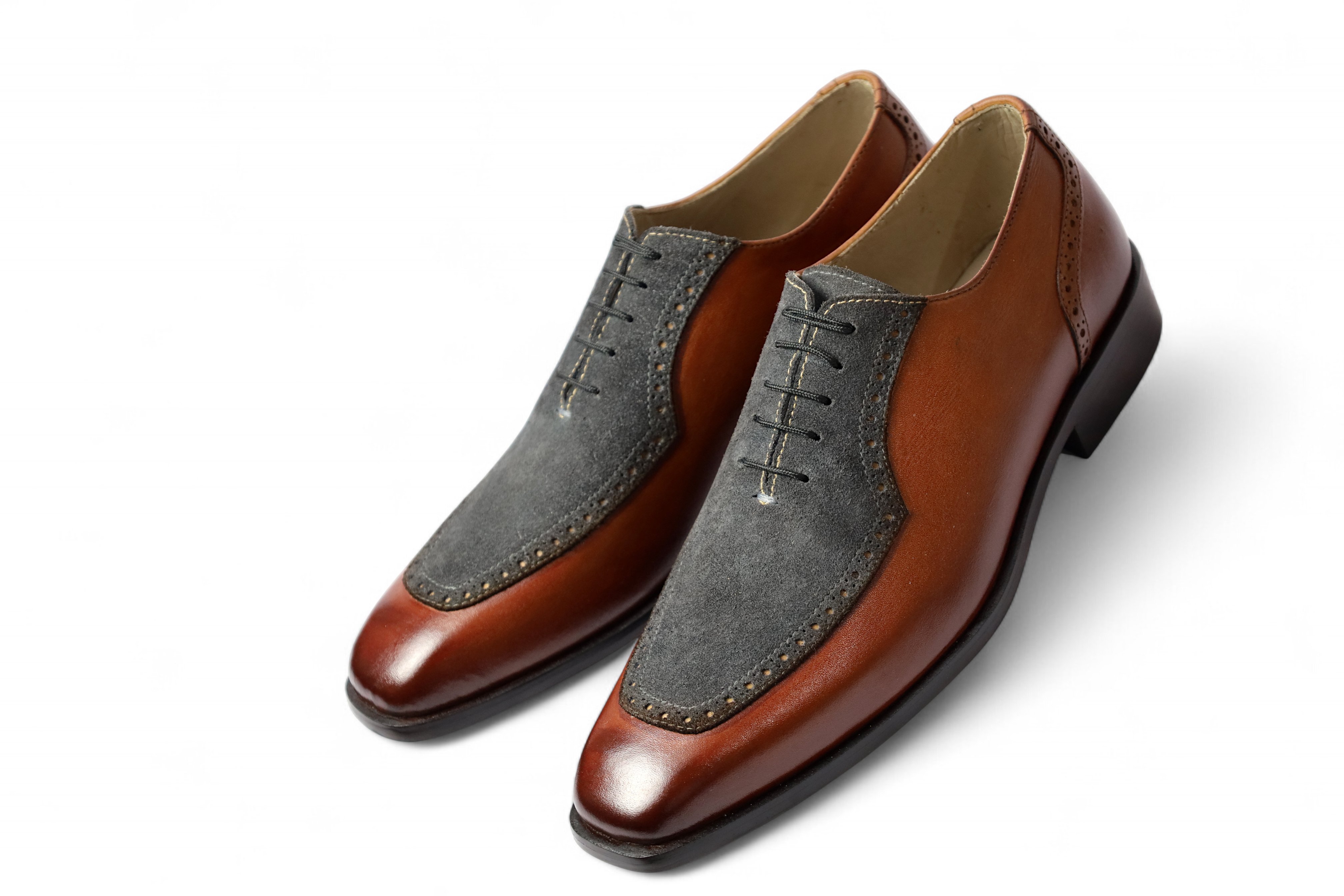 Crafted Leather Classic Brown Calf Gray Suede Leather Oxford Lace up Dress Shoes