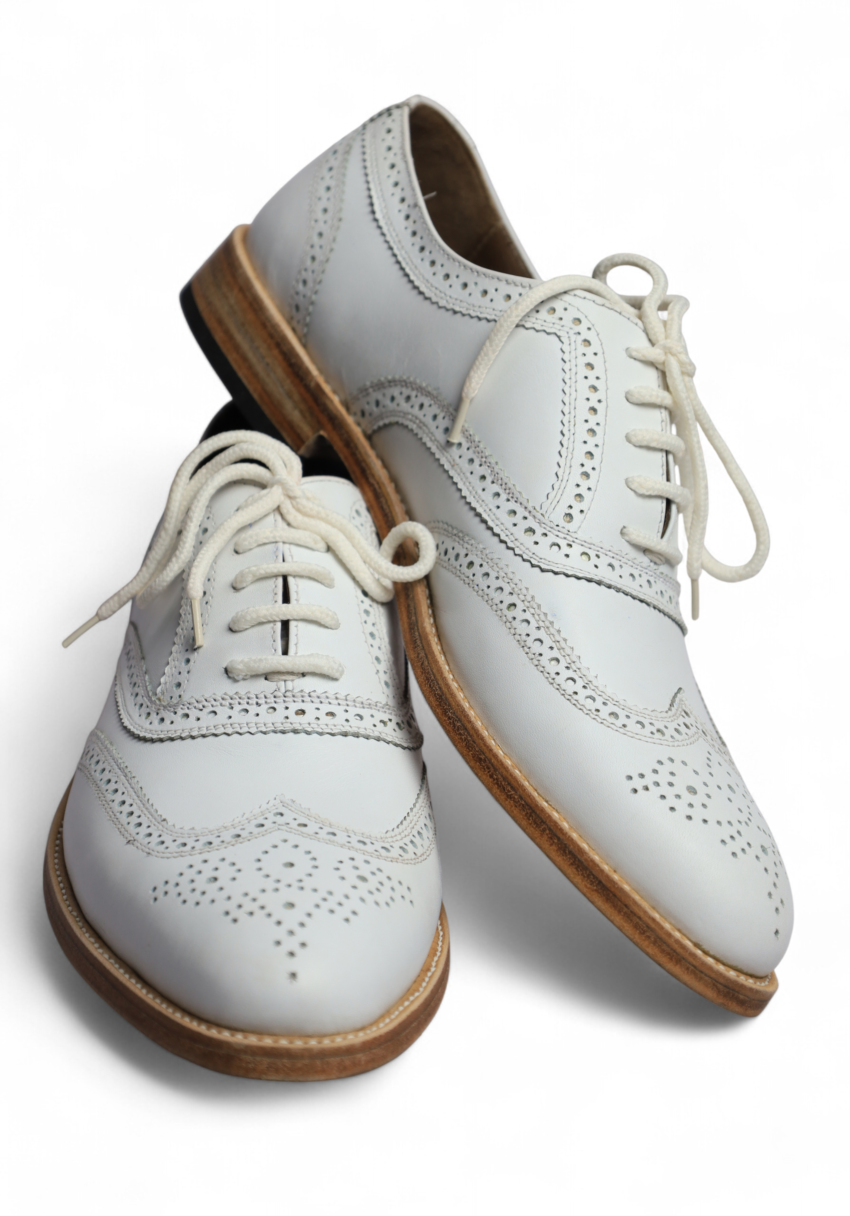 Crafted Leather Handmade Classic Wingtip White Leather Dress Shoes