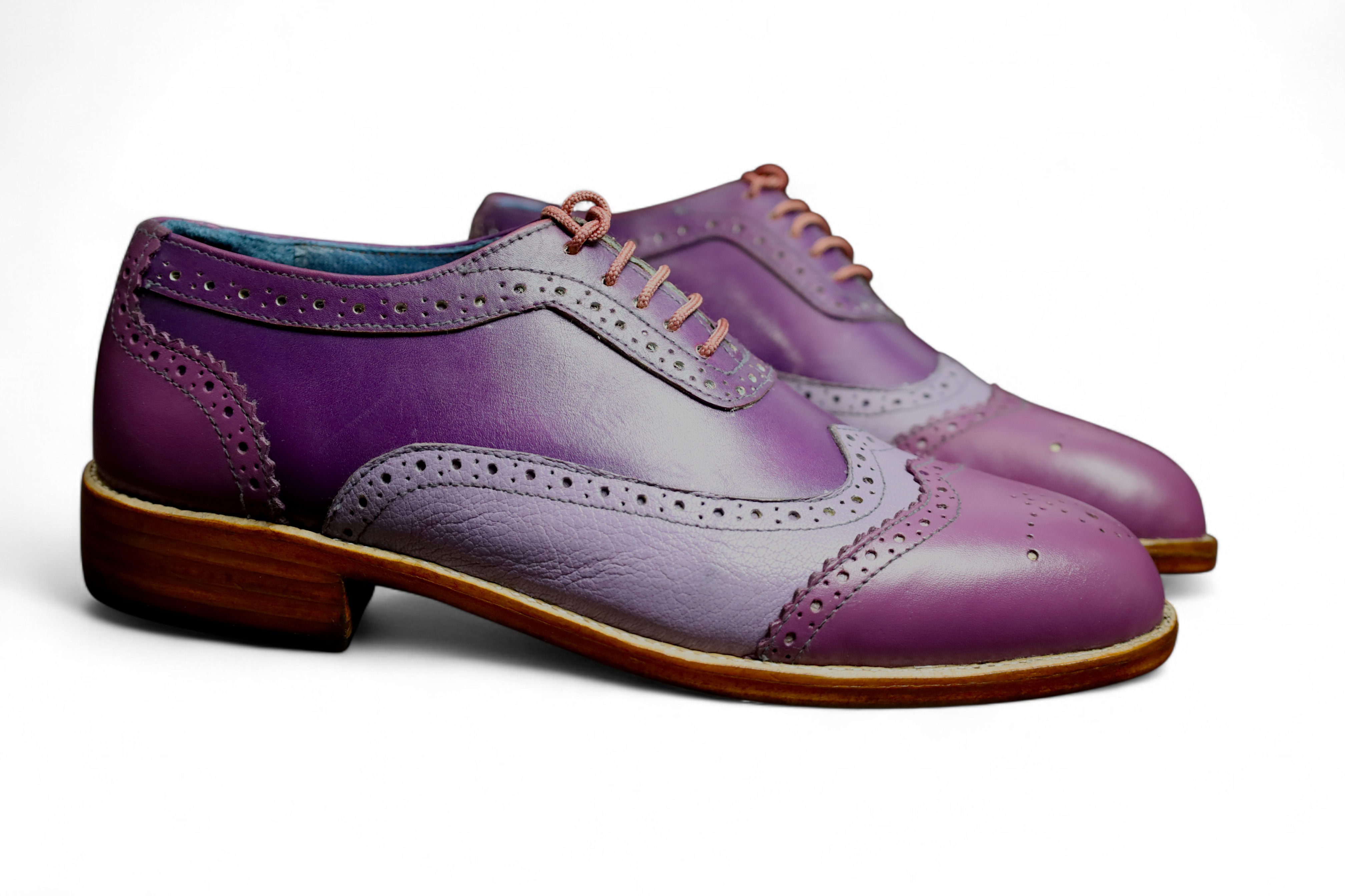 Crafted Leather Classic Handmade Mens Purple Wingtip Dress Oxford Shoes