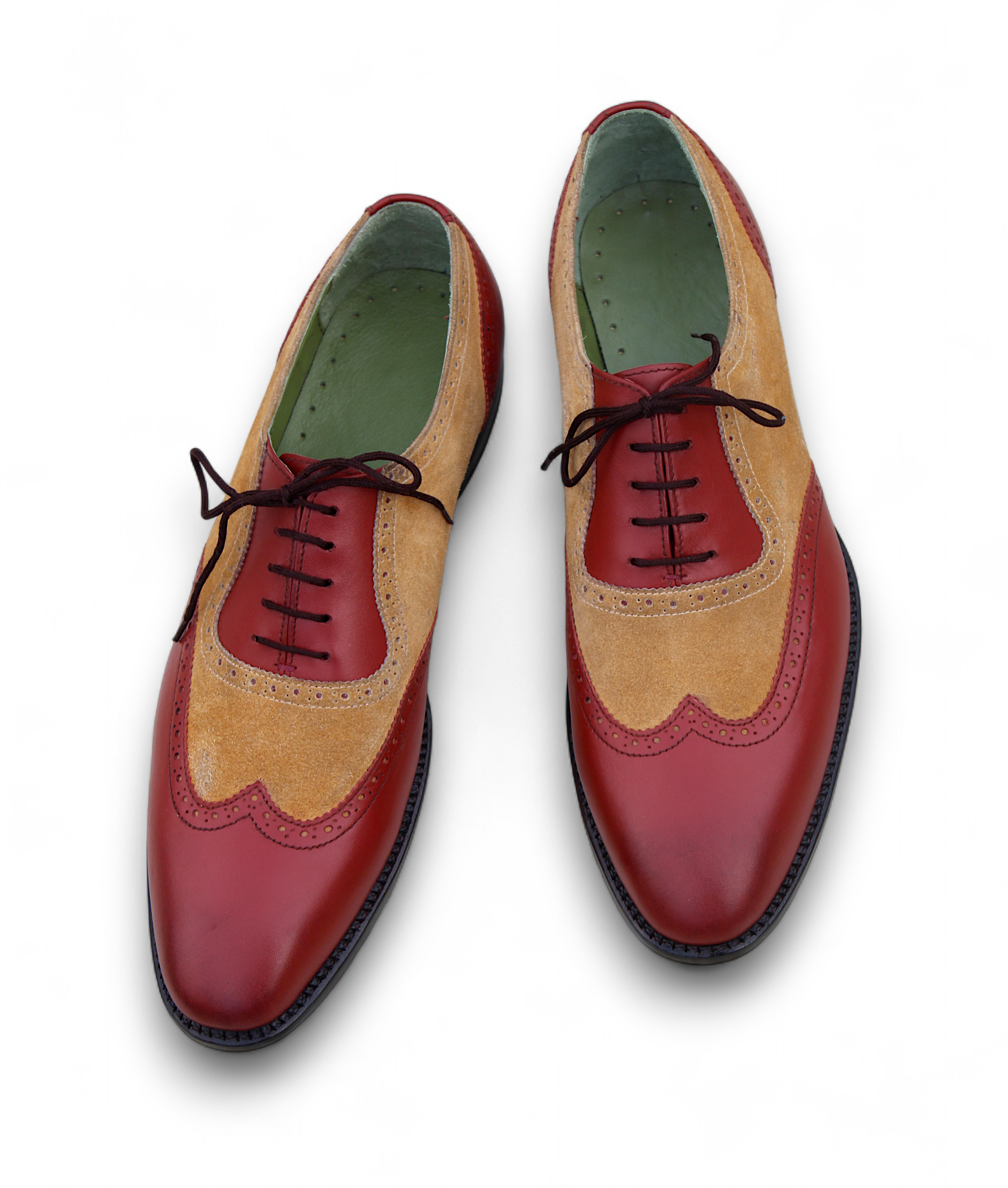 Crafted Leather Men Red Brown Suede Classic Oxford Wingtip Lace up Dress Shoes