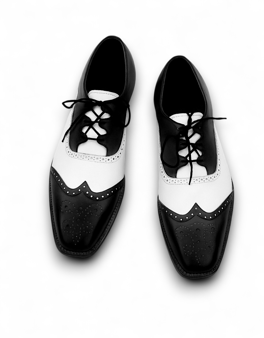 Crafted Leather Men’s Classic Ghillie Lacing Black White Leather Wing Tip Dress Shoes