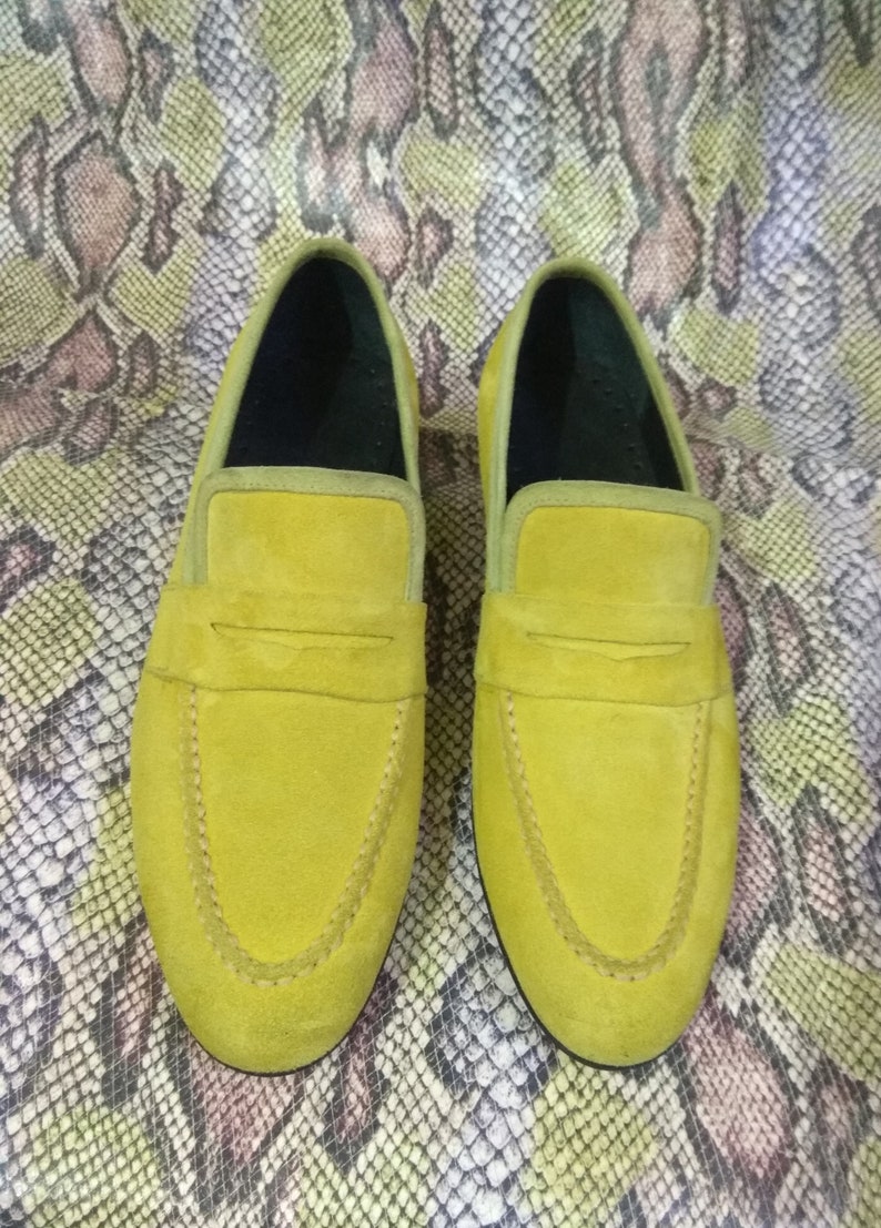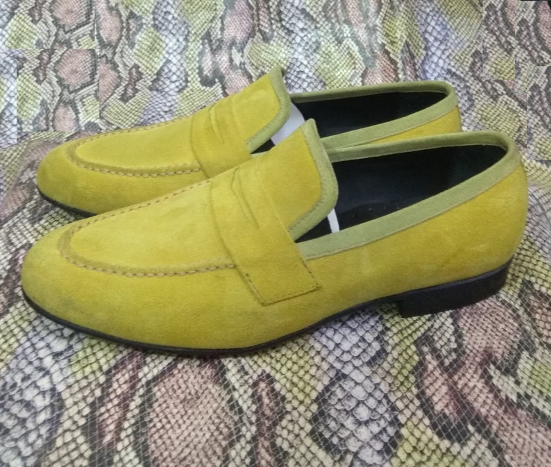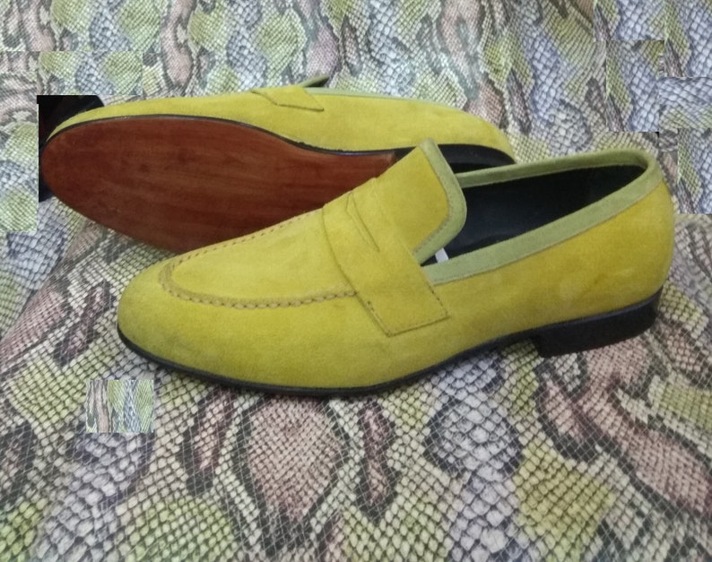 Handmade Lemon Green Color pure Suede Loafers Moccasin Formal Shoes
