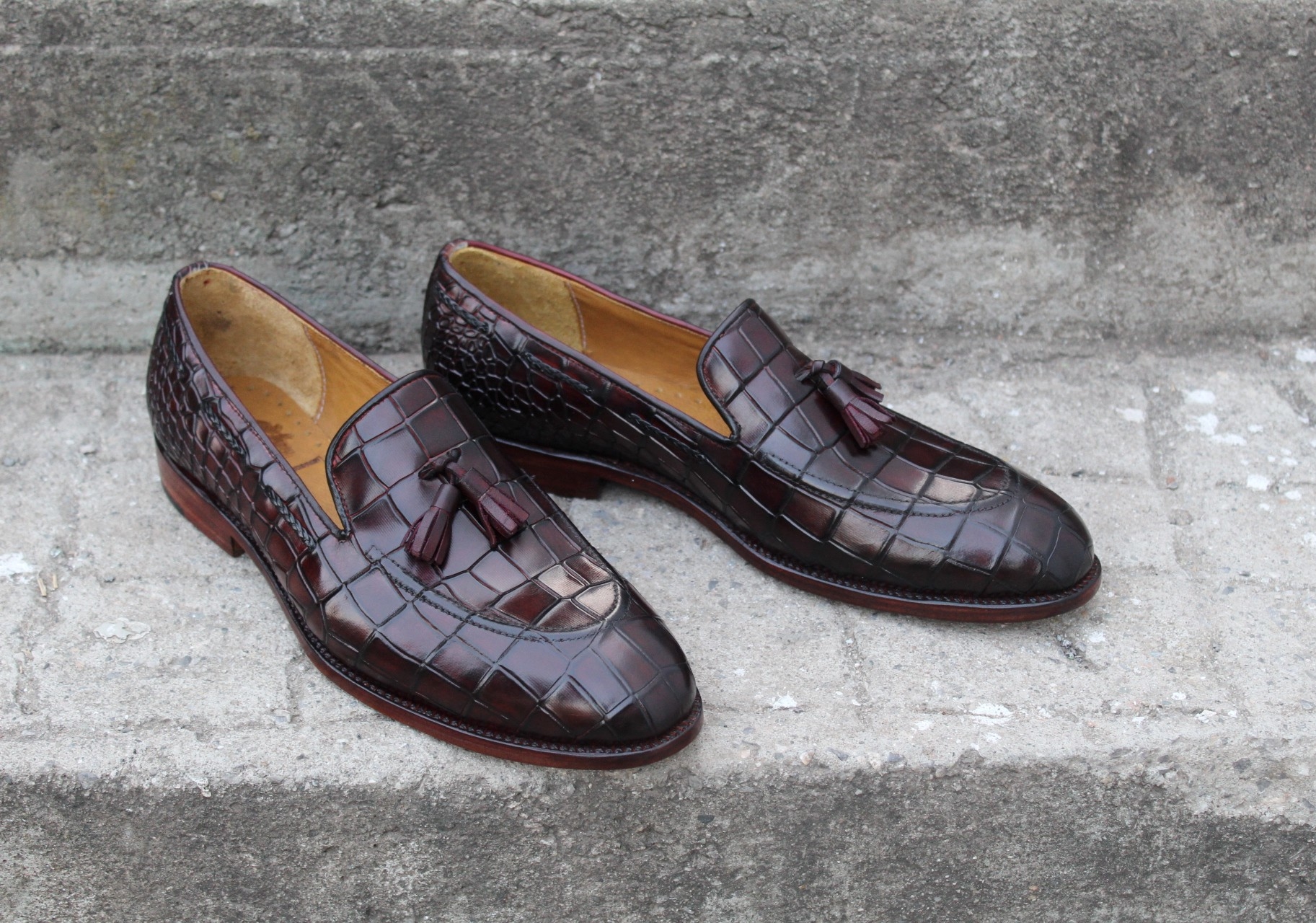 Crafted Leather Classic Dark Brown Crocodile/Alligator Leather Tassel Loafers Shoes