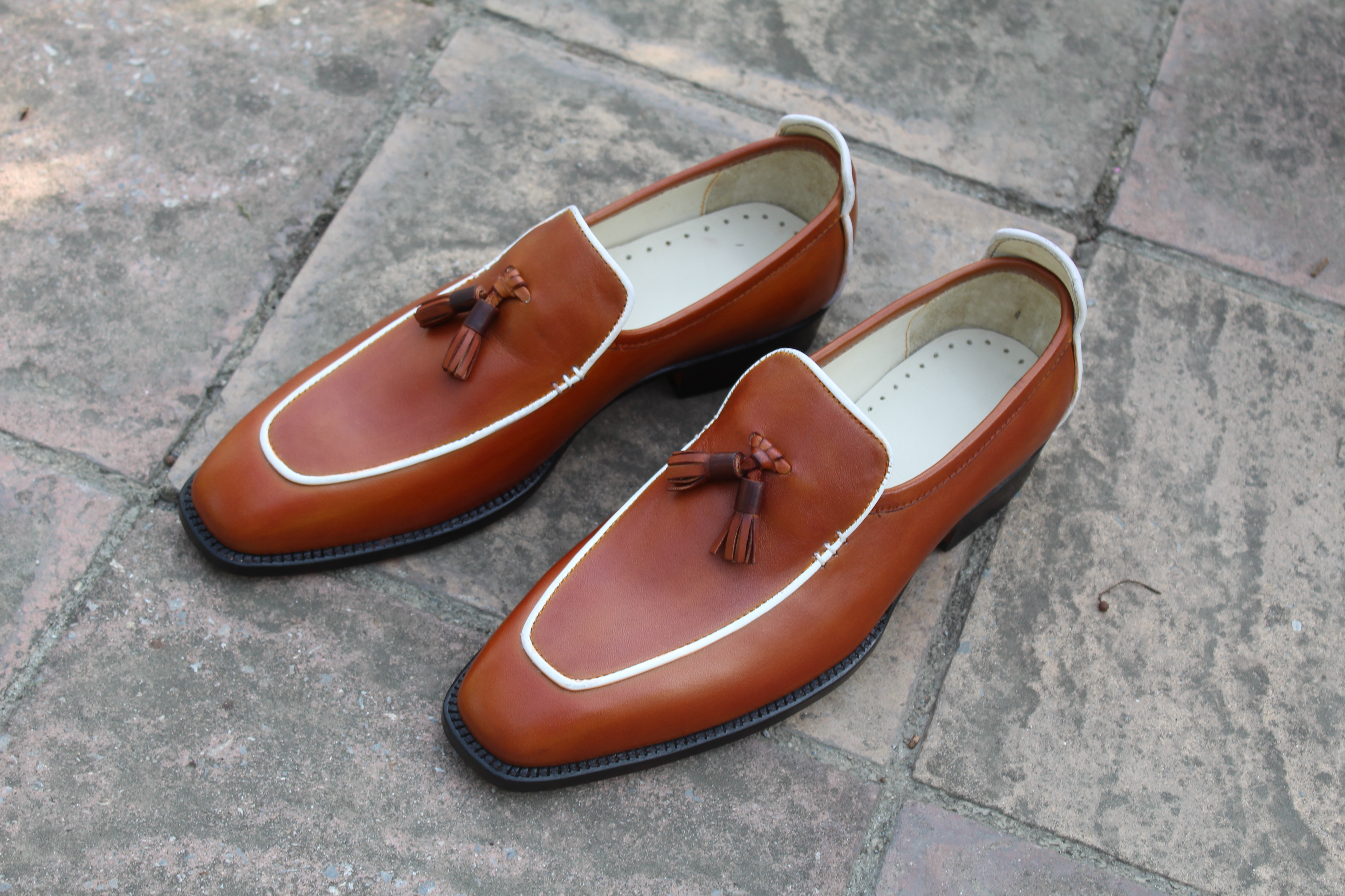 Inner: Soft Leather Sole: Leather Gender : Male Heel: Leather Color: Brown Style: Tassel Loafers Shoes Totally Hand stitched Manufacturing time 7-10 business days If you can’t find your Size/Colorjust send us message we will make for you.