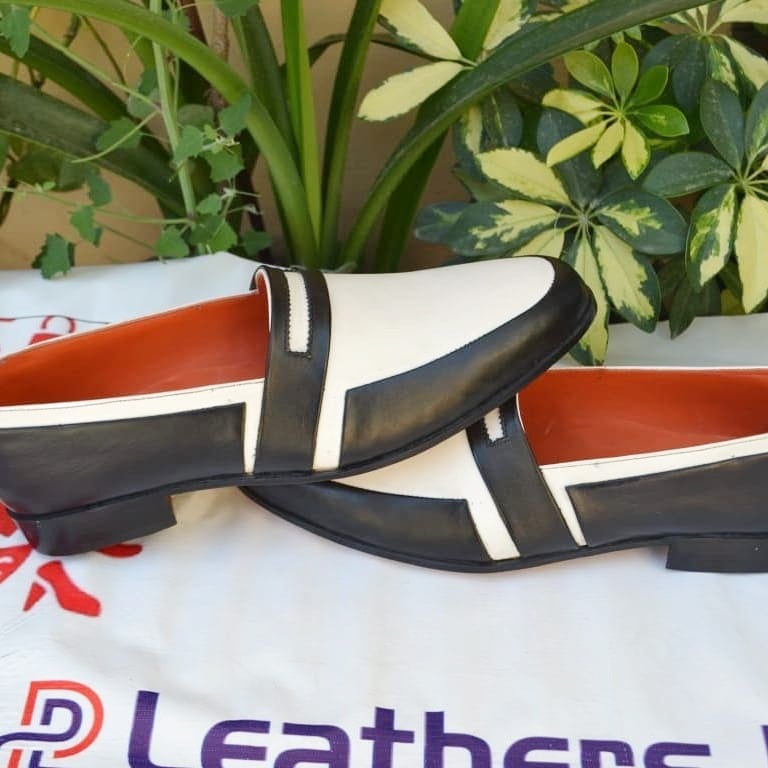 Inner: Soft Leather Sole: Leather Gender : Male Heel: Leather Color: Black / White Style: Loafers Shoes Lining Soft Calf Leather Lining Totally Hand stitched Manufacturing time 7-10 business days If you can’t find your Size/Colorjust send us message we will make for you.