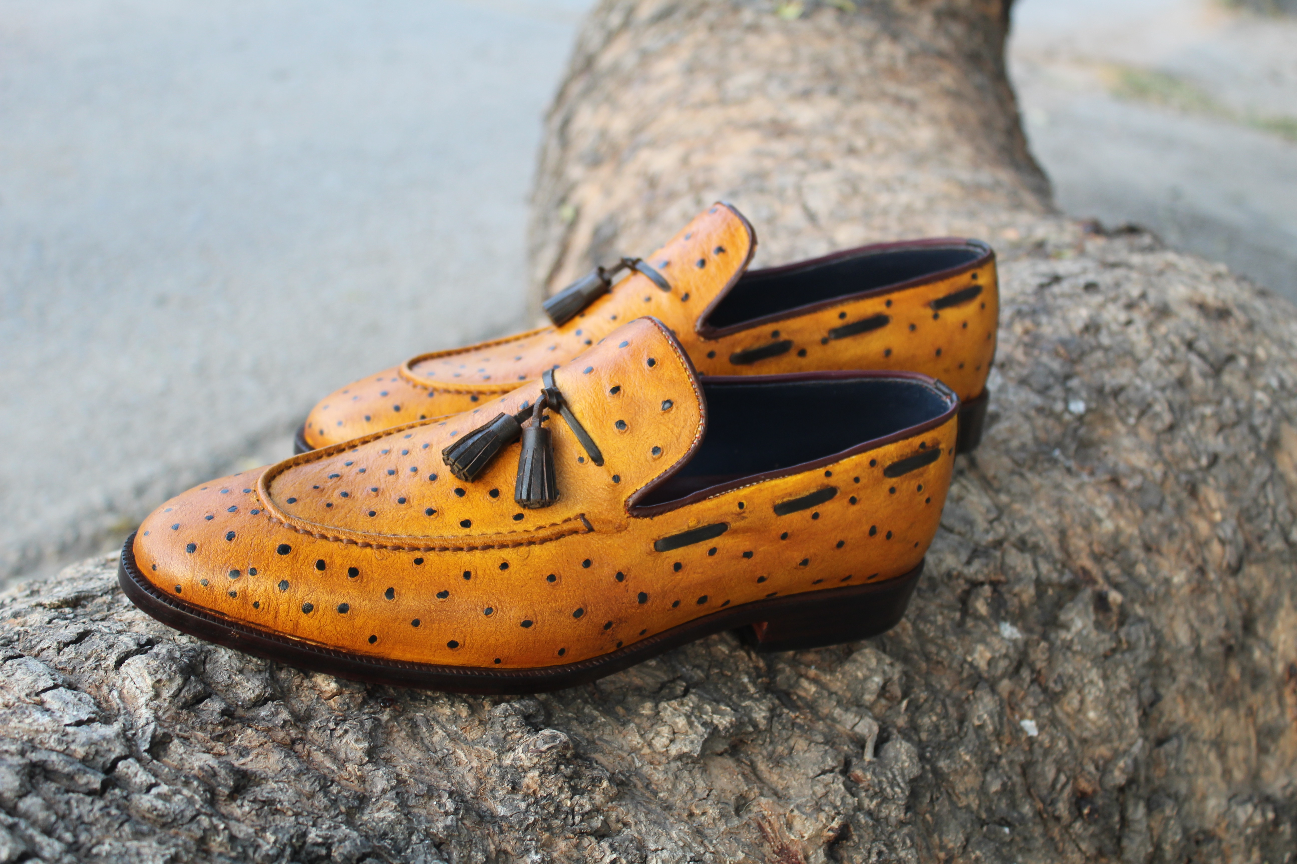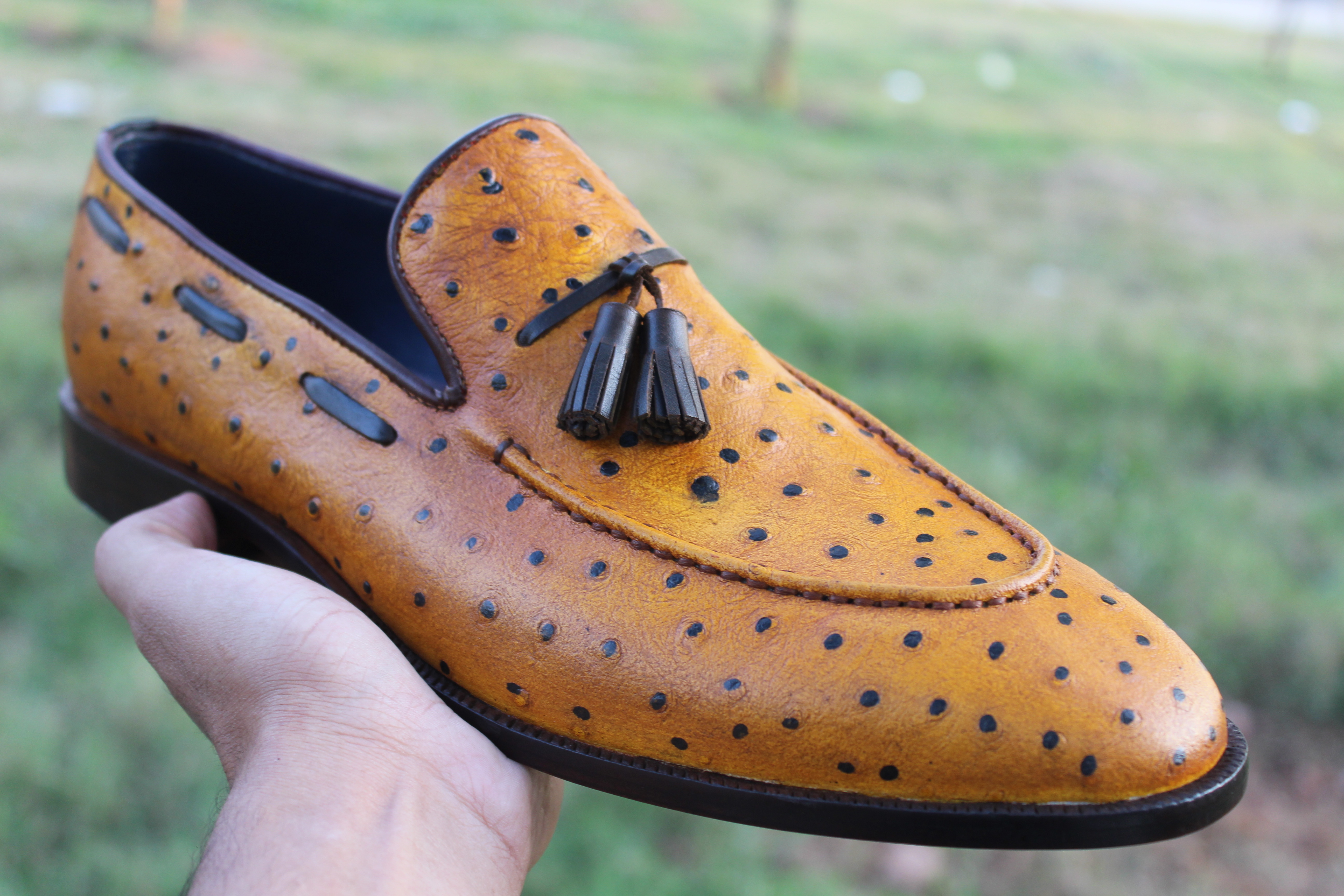 Handmade Men Ostrich Leather Classic Tassel Loafers Shoes