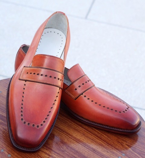 Inner: Soft Leather Sole: Leather Gender : Male Heel: Leather Color: Brown Style: Loafers Shoes Lining Soft Calf Leather Lining Totally Hand stitched Manufacturing time 7-10 business days If you can’t find your Size/Colorjust send us message we will make for you.