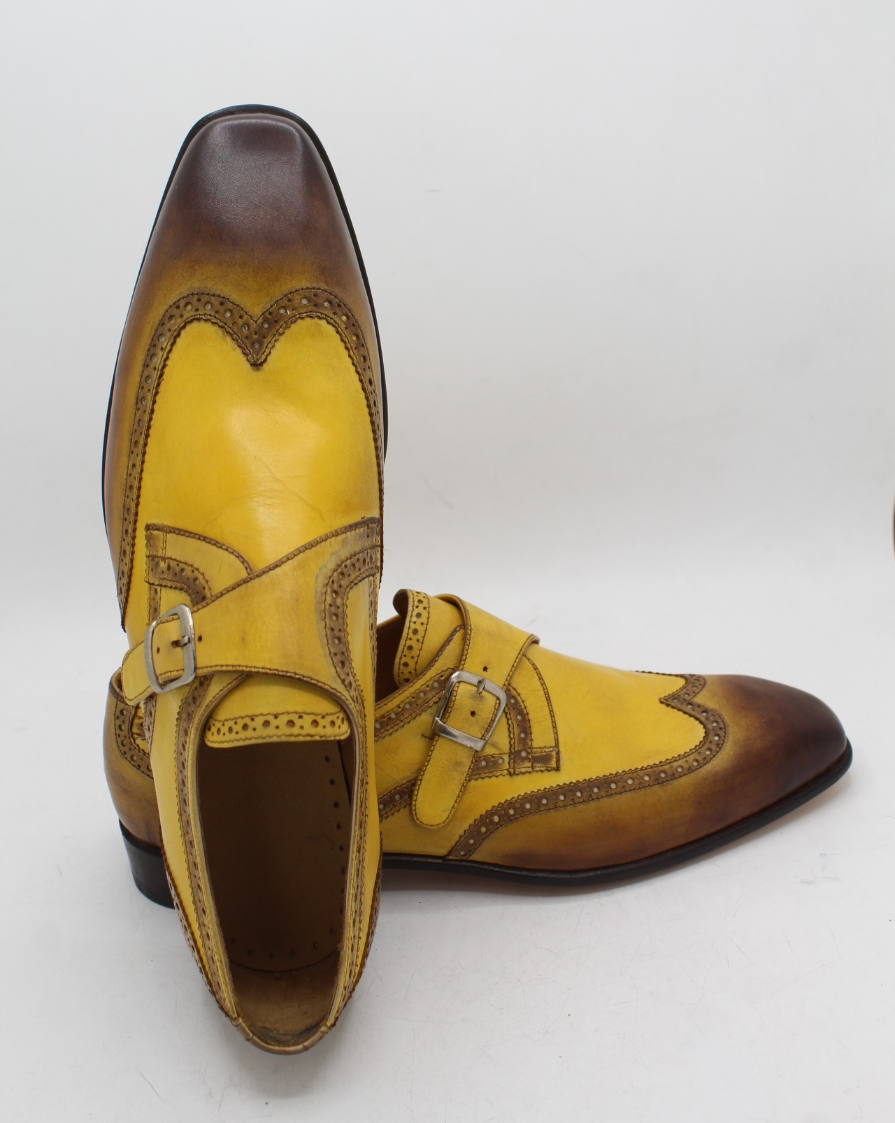 Crafted Leather Tan Brown Single Monk Strap Wingtip Dress Shoes