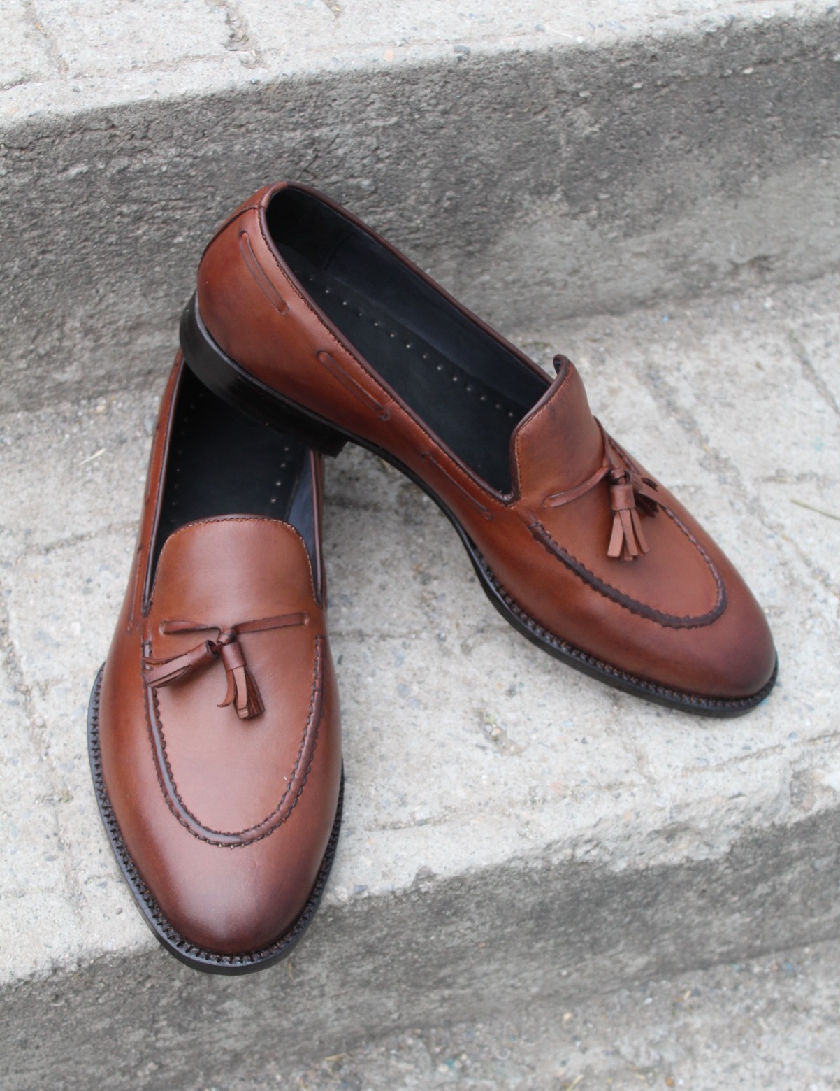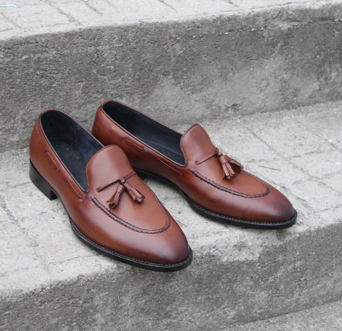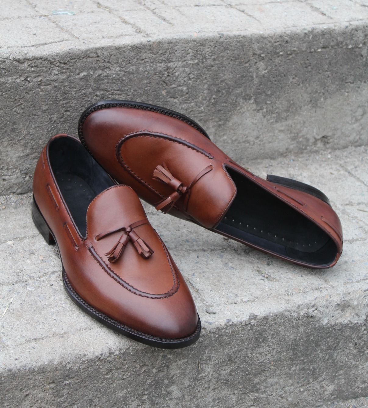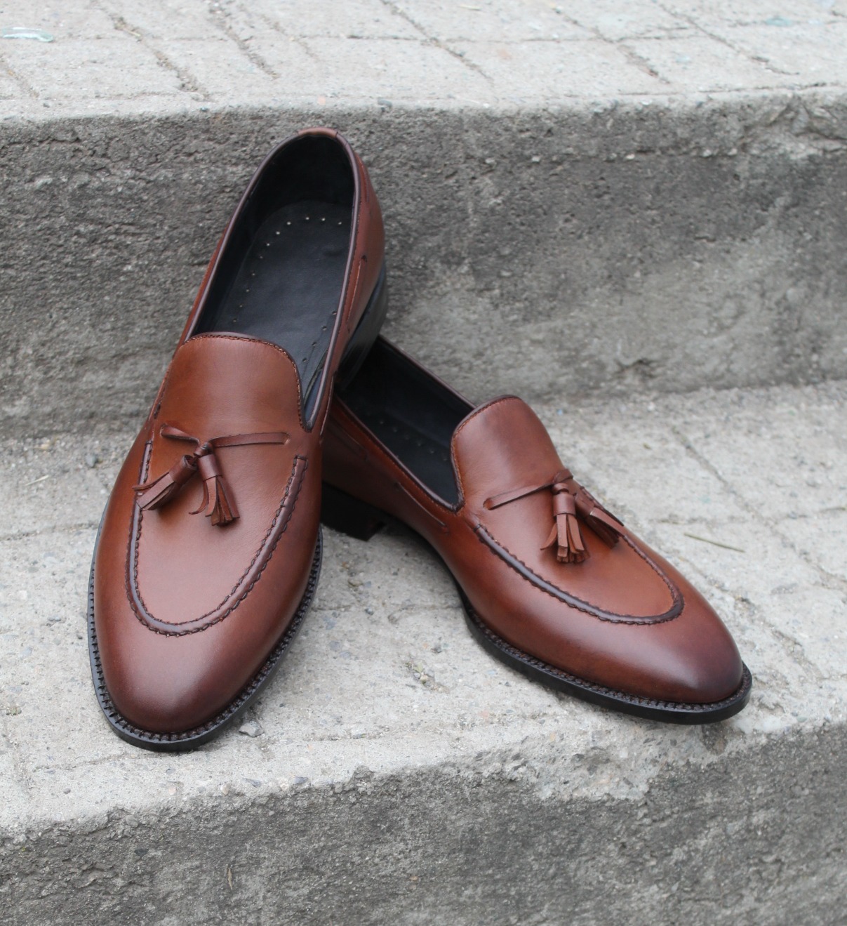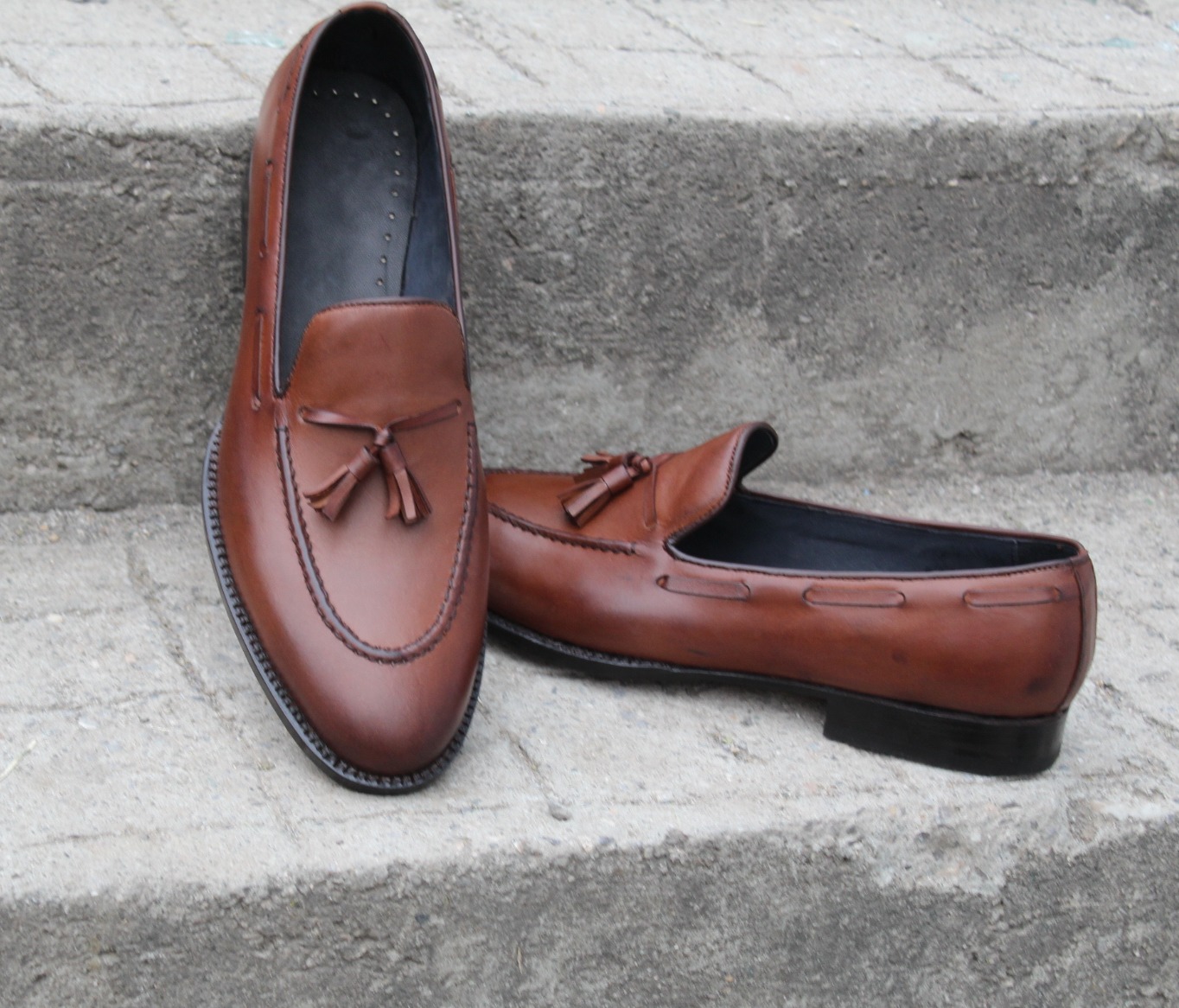 Inner: Soft Leather Sole: Leather Gender : Male Heel: Leather Color: Brown Style: Tassel Loafers Shoes Lining Soft Calf Leather Lining Totally Hand stitched Manufacturing time 7-10 business days If you can’t find your Size/Colorjust send us message we will make for you.