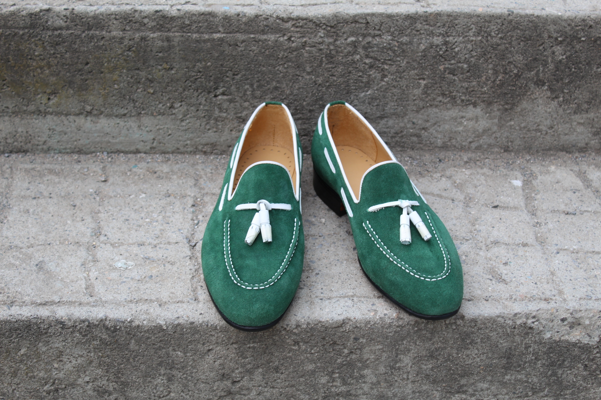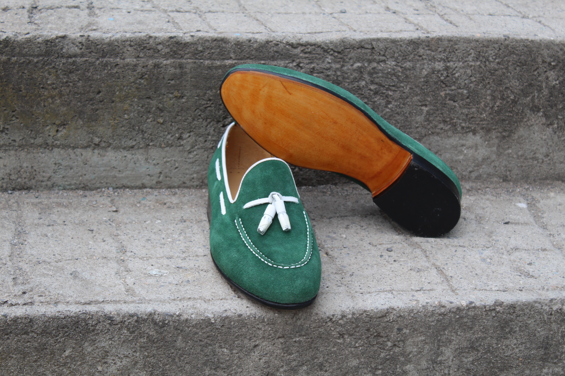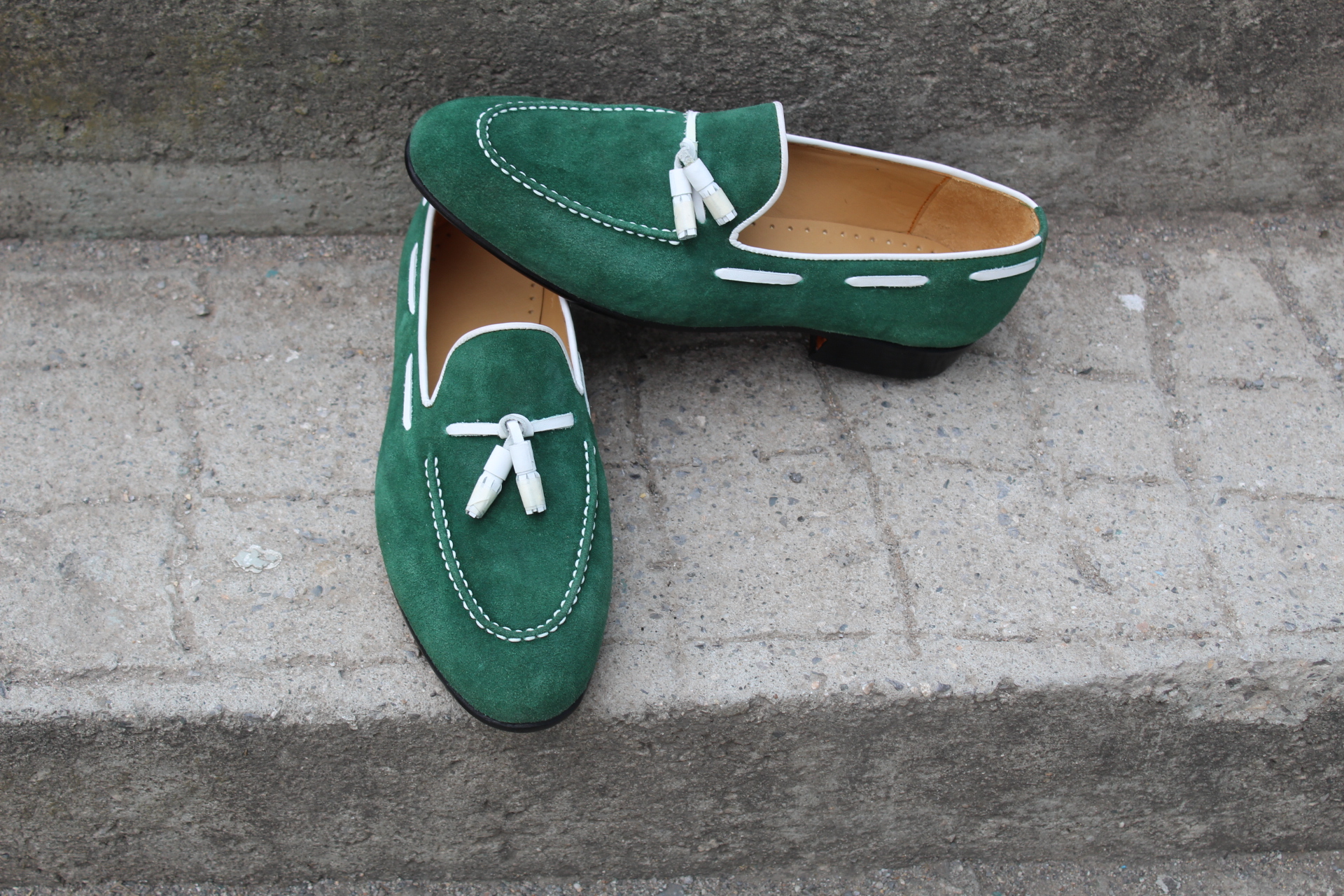 Inner: Soft Leather Sole: Leather Gender : Male Heel: Leather Color: Green Style: Tassel Loafers Shoes Lining Soft Calf Leather Lining Totally Hand stitched Manufacturing time 7-10 business days If you can’t find your Size/Colorjust send us message we will make for you.