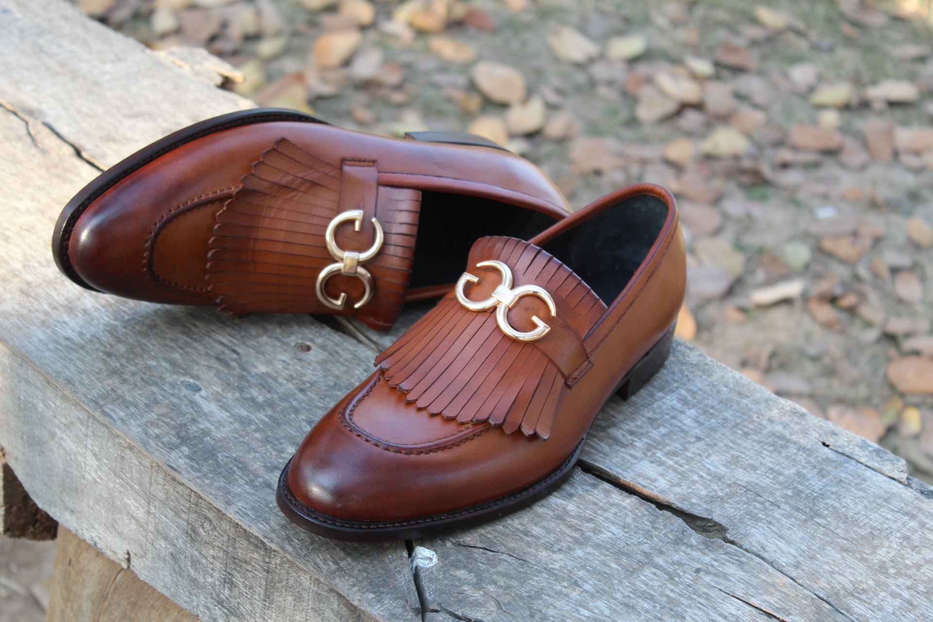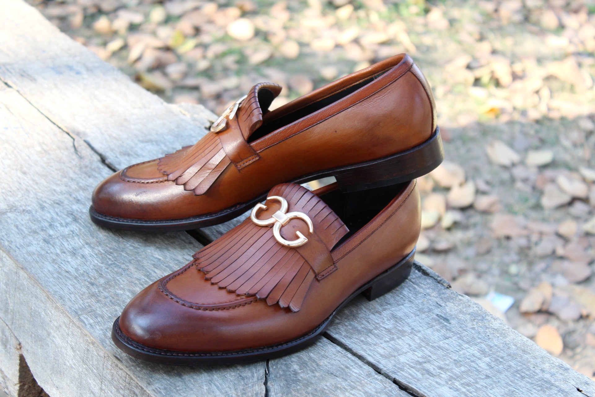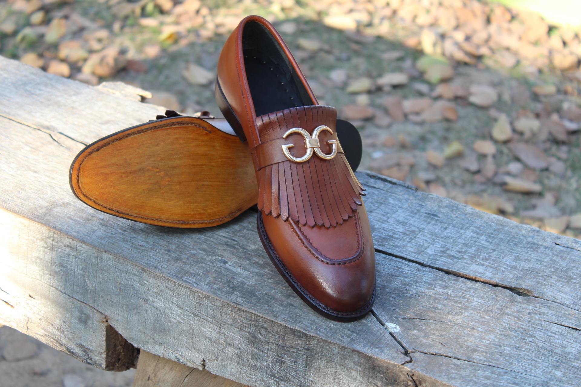 Inner: Soft Leather  Sole: Leather  Gender : Male Heel: Leather Color:    Brown Style:  Fringes Loafers Shoes Lining Soft Calf Leather Lining Totally Hand stitched Manufacturing time 7-10 business days If you can’t find your Size/Colorjust send us message we will make for you.
