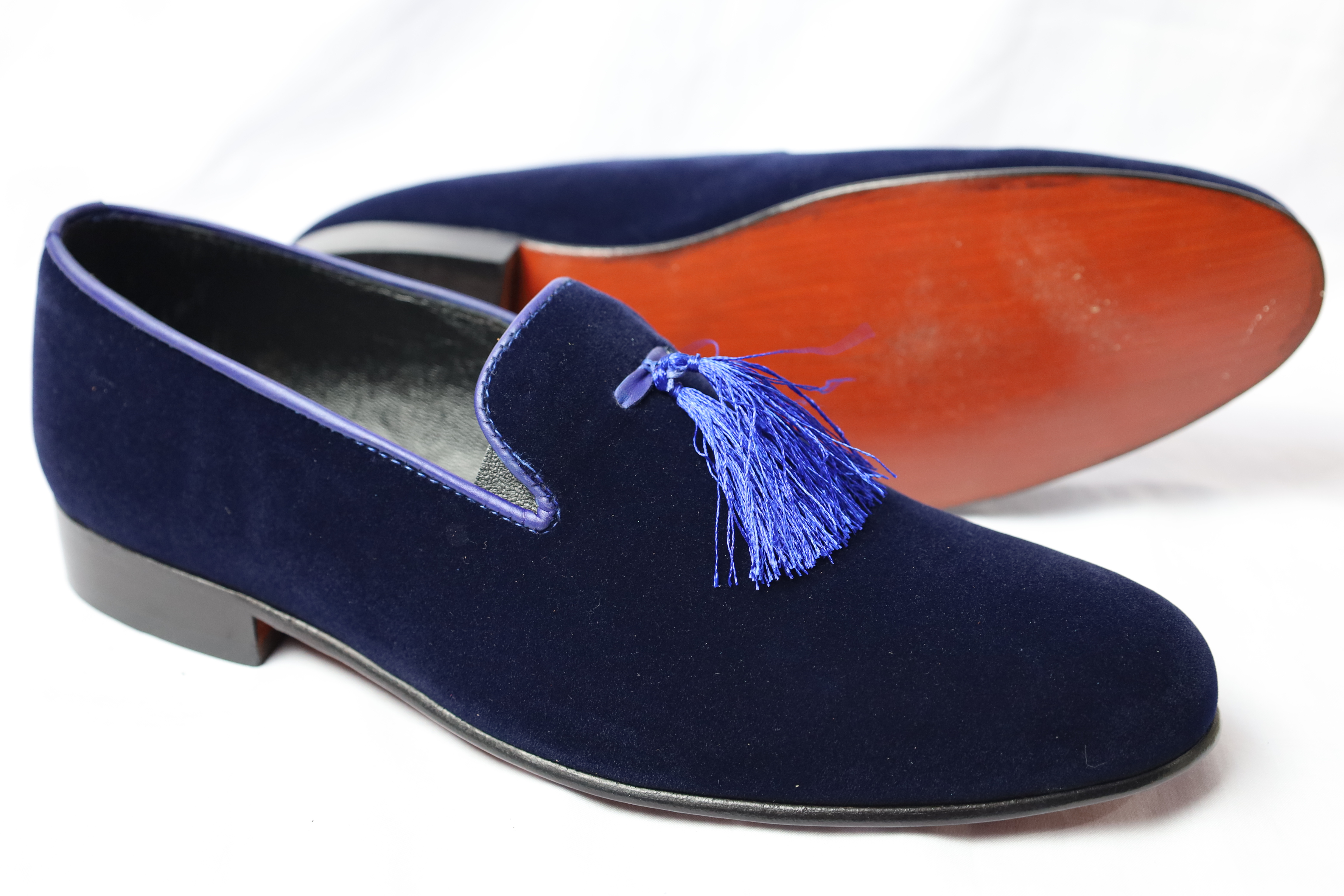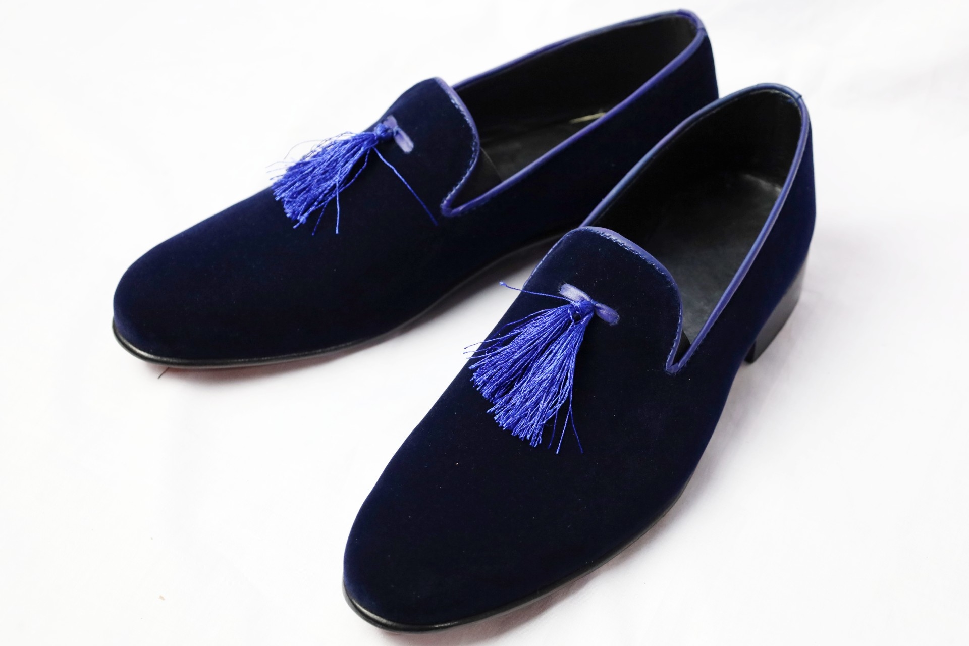 Crafted Leather Blue Velvet Loafers Dress Shoes For Men