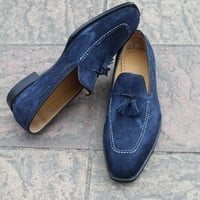 Crafted Leather Classic Blue Suede Leather Tassel Loafers Dress Shoes