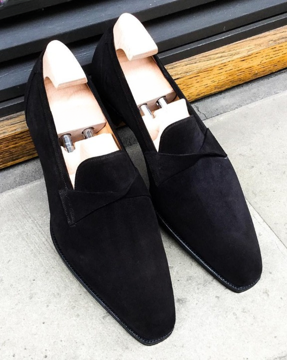 Handmade Men Black Suede Leather Moccasin Loafers Dress Shoes