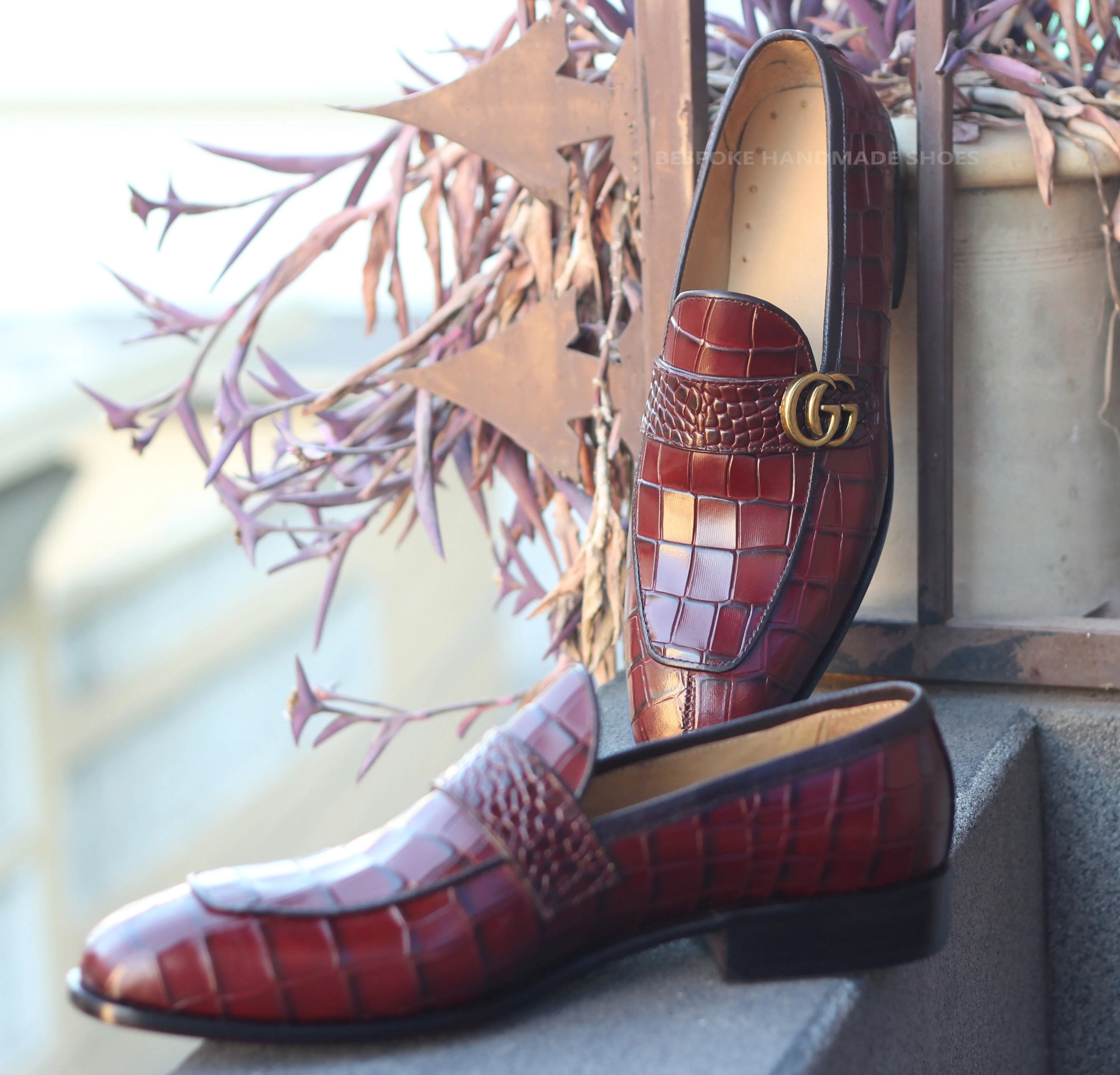 Crafted Leather Classic Men Crocodile/Alligator Leather Moccasin Loafers Dress Shoes