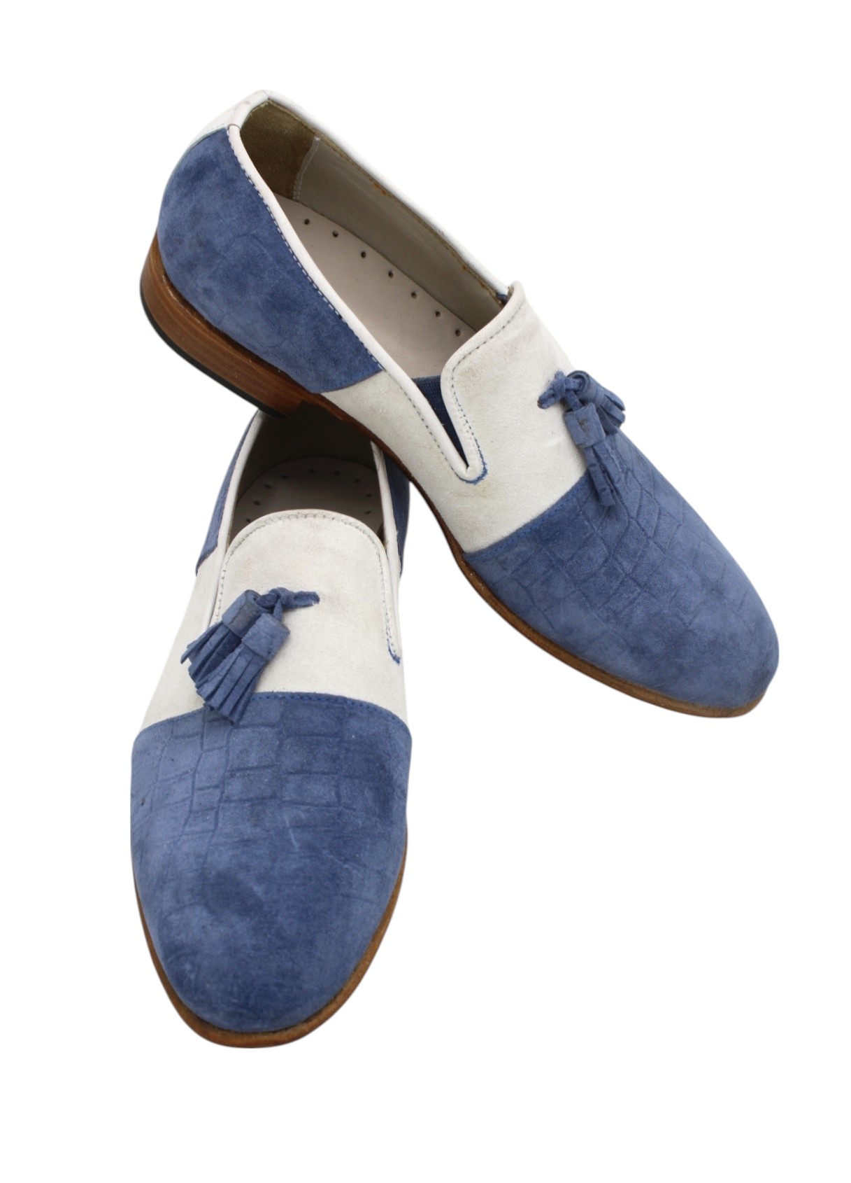 Crafted Leather Classic White Blue Crocodile Tassel Loafer Mens Shoes