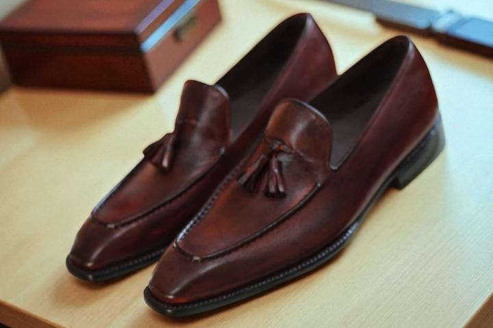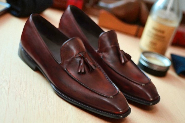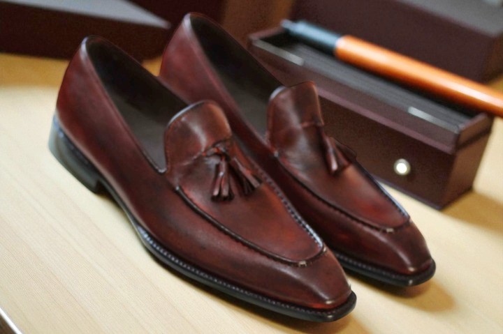 Inner: Soft Leather Sole: Leather Gender : Male Heel: Leather Color: Brown Patina Style: Tassel Loafers Shoes Lining Soft Calf Leather Lining Totally Hand stitched Manufacturing time 7-10 business days If you can’t find your Size/Colorjust send us message we will make for you.