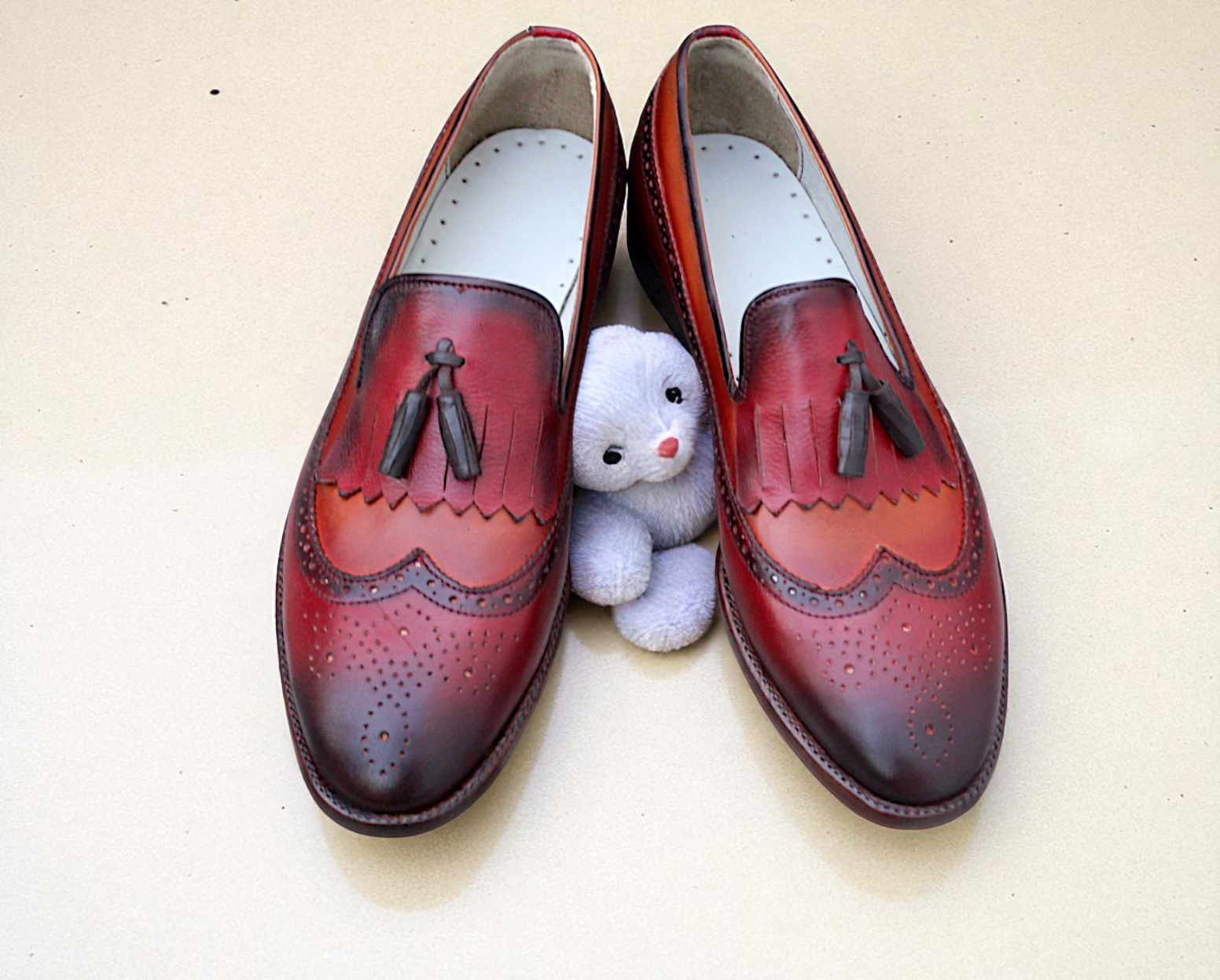 Inner: Soft Leather Sole: Leather Gender : Male Heel: Leather Color: Brown Patina Style: Fringes Tassel Loafers Shoes Lining Soft Calf Leather Lining Totally Hand stitched Manufacturing time 7-10 business days If you can’t find your Size/Colorjust send us message we will make for you.