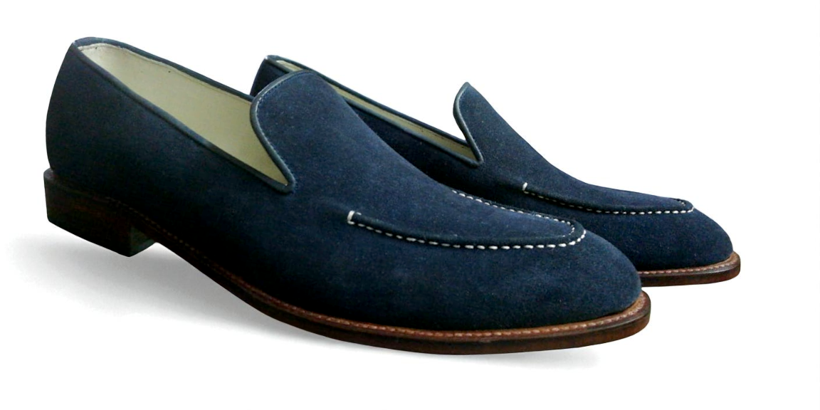Crafted Leather Classic Blue Suede Leather Moccasin Loafers Dress Shoes