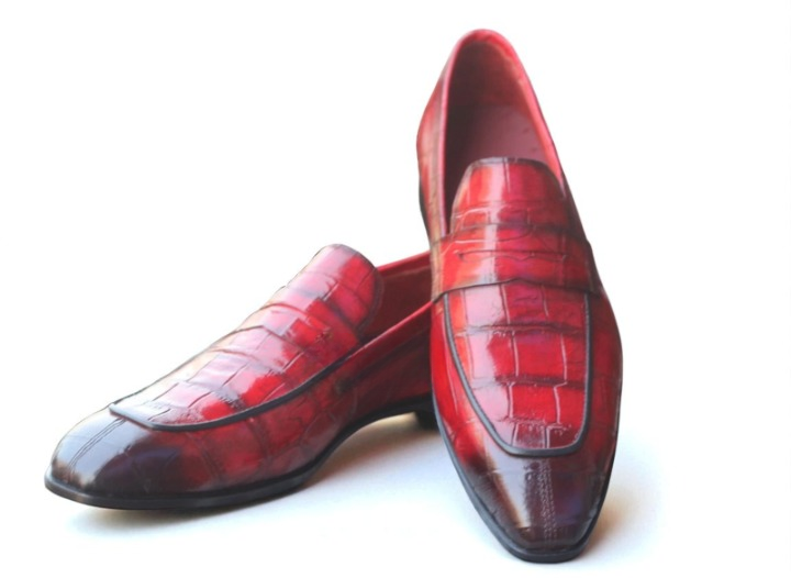 Crafted Leather Classic Red Crocodile Leather Moccasin Loafers Dress Shoes