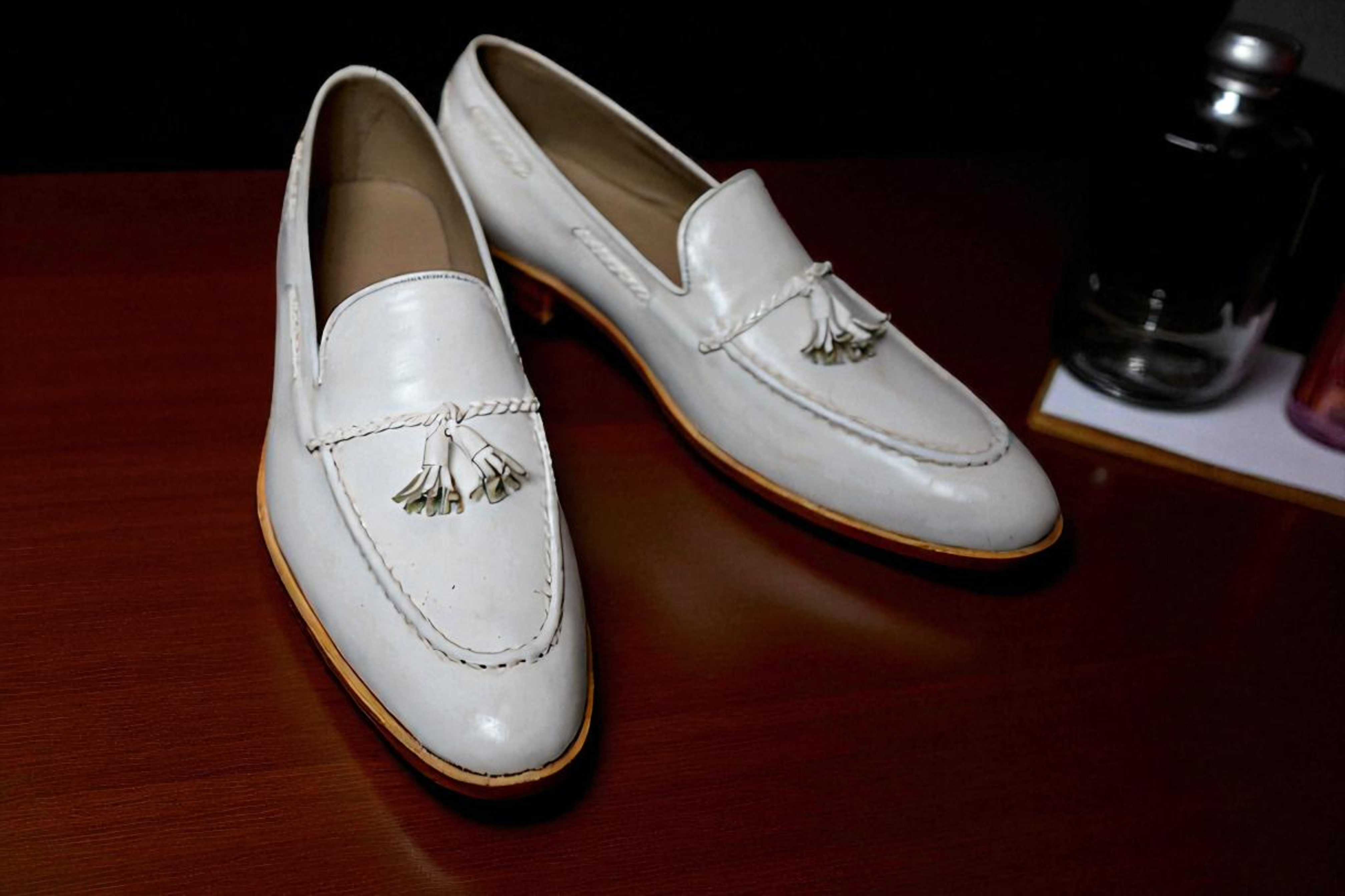 Crafted Leather Classic White Leather Tassel Loafers Dress Shoes
