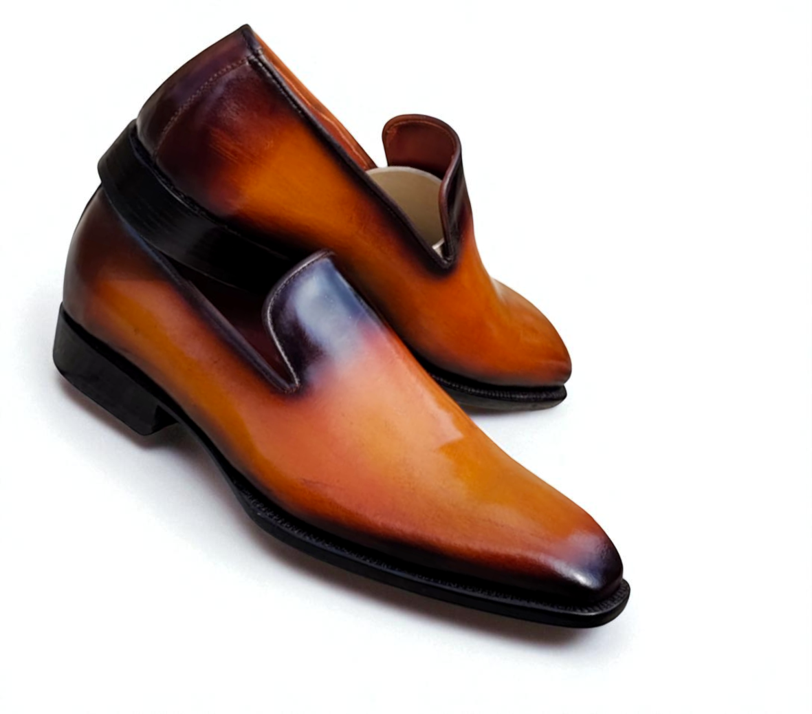 Crafted Leather Classic Men Brown Black Shaded Leather Loafers Dress Shoes