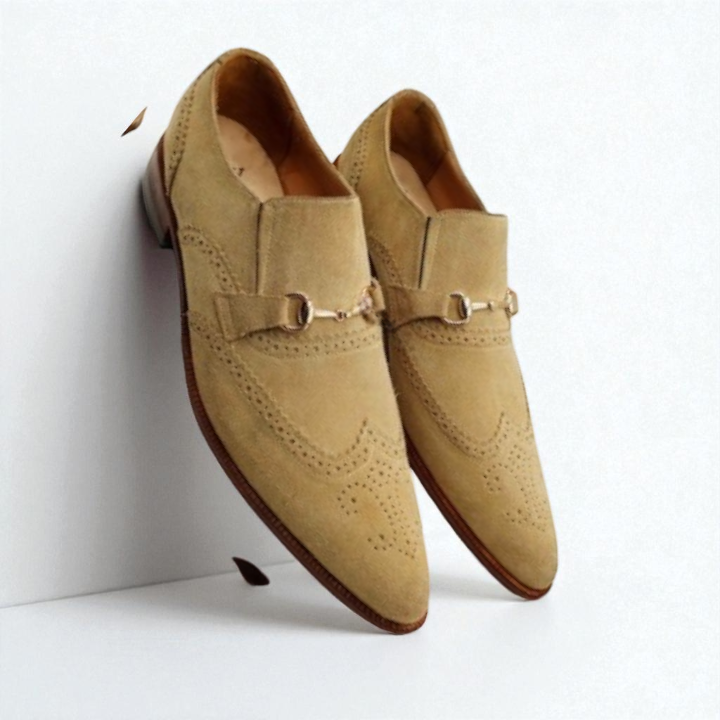 Crafted Leather New Handmade Men's Beige Suede Leather Moccasin Loafers Dress Shoes