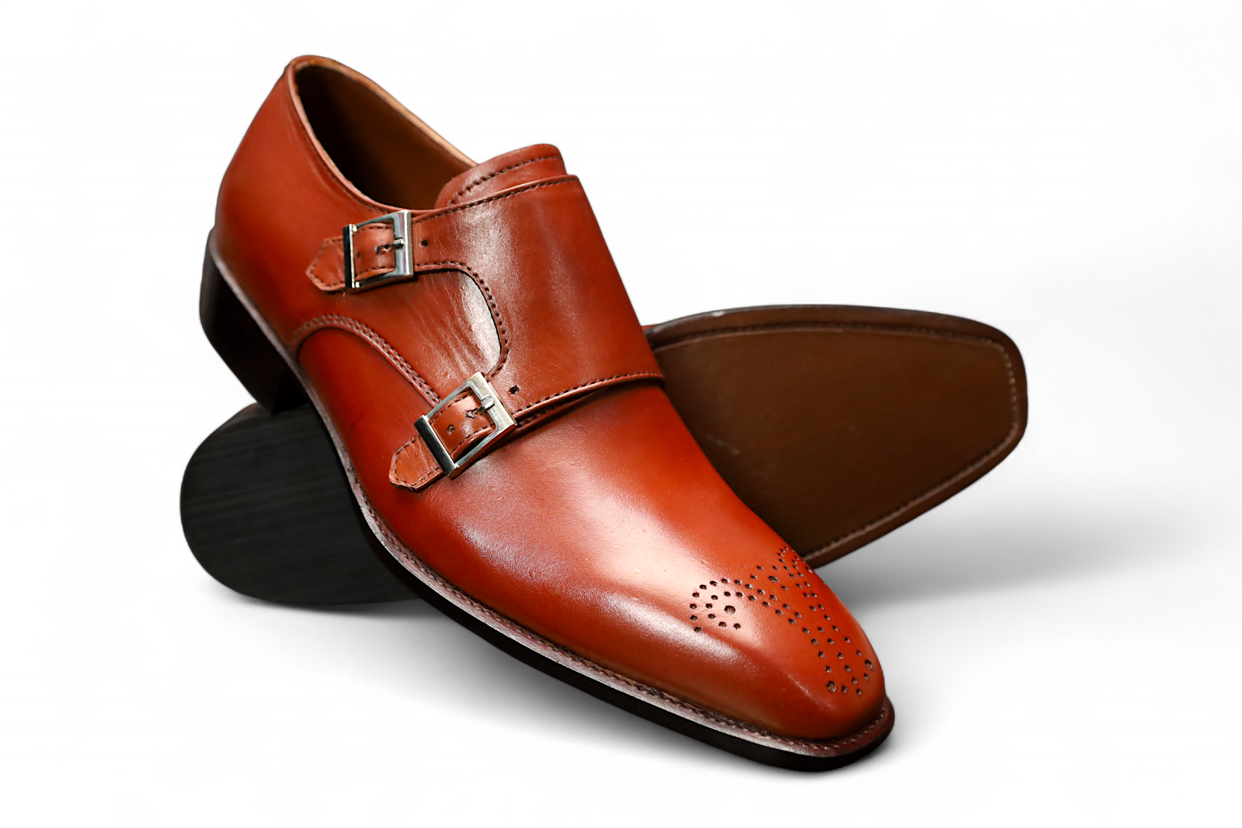 Crafted Leather Handmade Brown Leather Monk Strap Dress Shoes