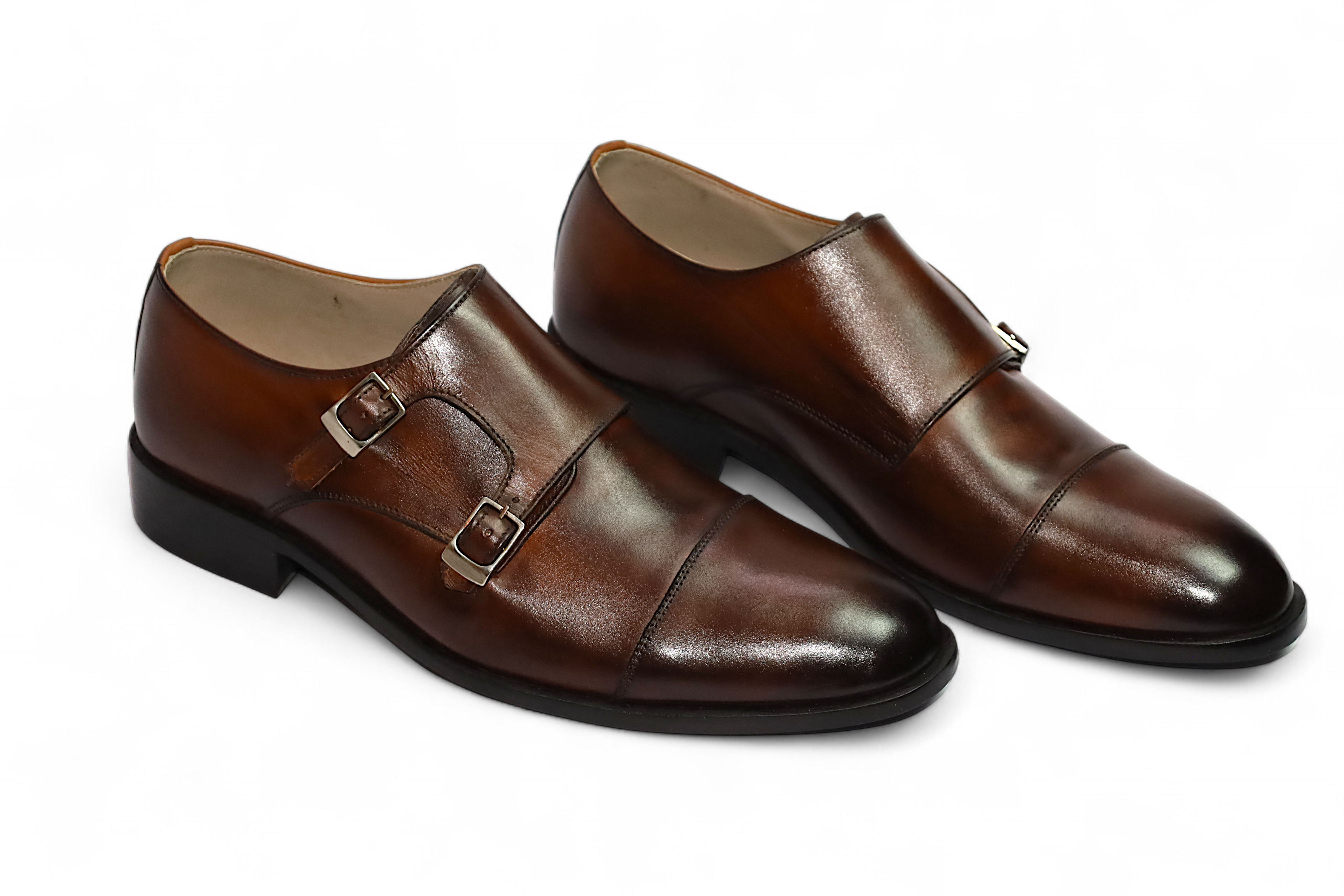 Inner: Soft Leather Sole: Leather Gender : Male Heel: Leather Color: Dark Brown Style: Monk Strap Shoes Totally Hand stitched Manufacturing time 7-10 business days If you can’t find your Size/Color just send us message we will make for you.