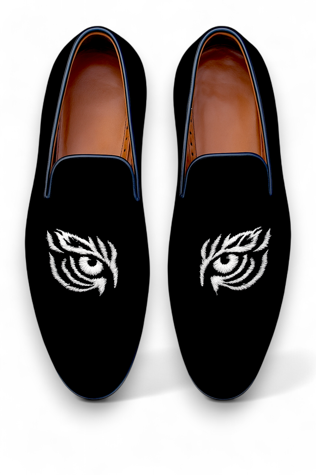 Crafted Leather Classic Black Velvet Loafers Men Shoes EYE OF THE TIGER
