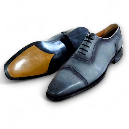 Crafted Leather Gray Patina Leather Wingtip Oxford Dress Shoes