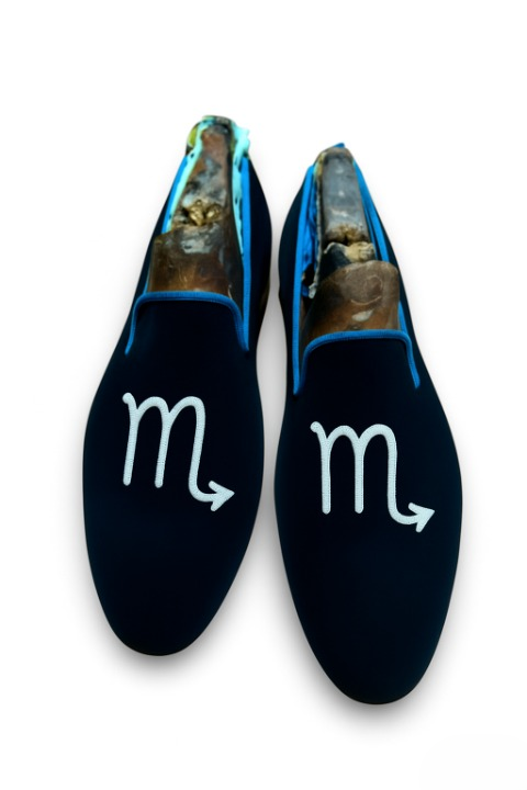 Crafted Leather Velvet '' Scorpio '' Astrological Sign Loafers Shoes Blue