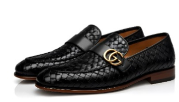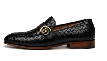Crafted Leather Mens Classic Designer Black Woven Leather Moccasin Loafers Dress Shoes