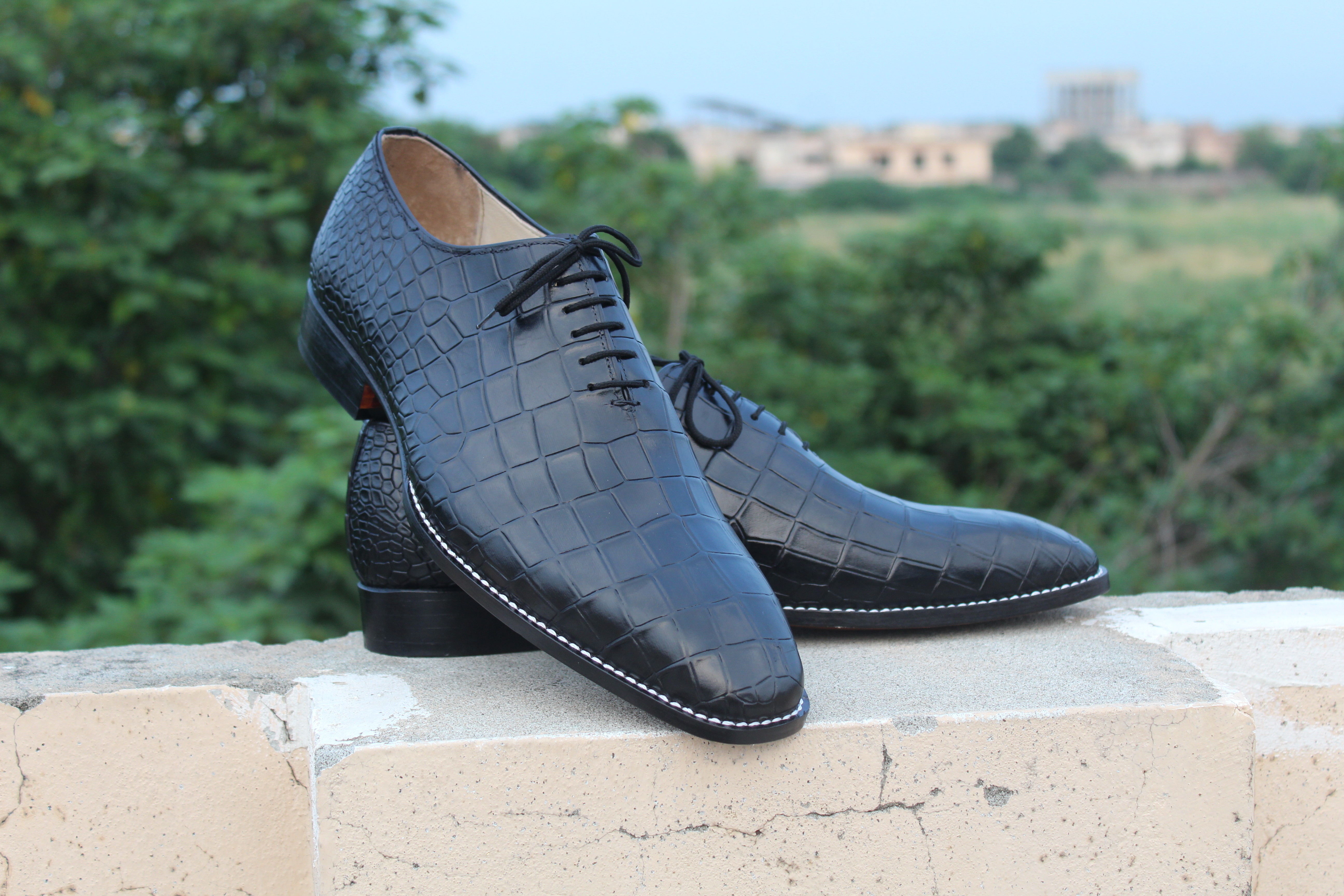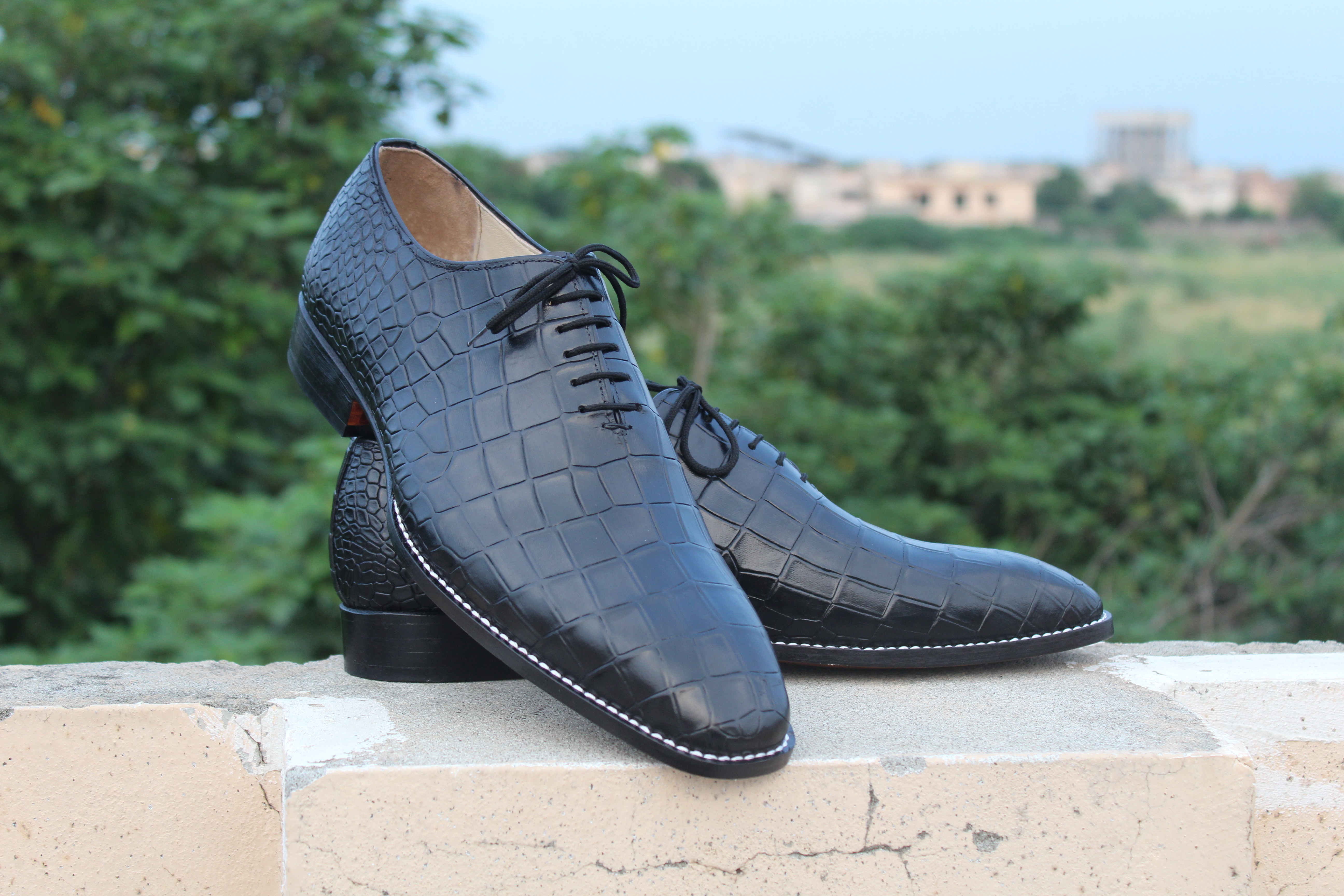 Crafted Leather Oxford Men Black Crocodile Luxury Dress Leather Formal Shoes