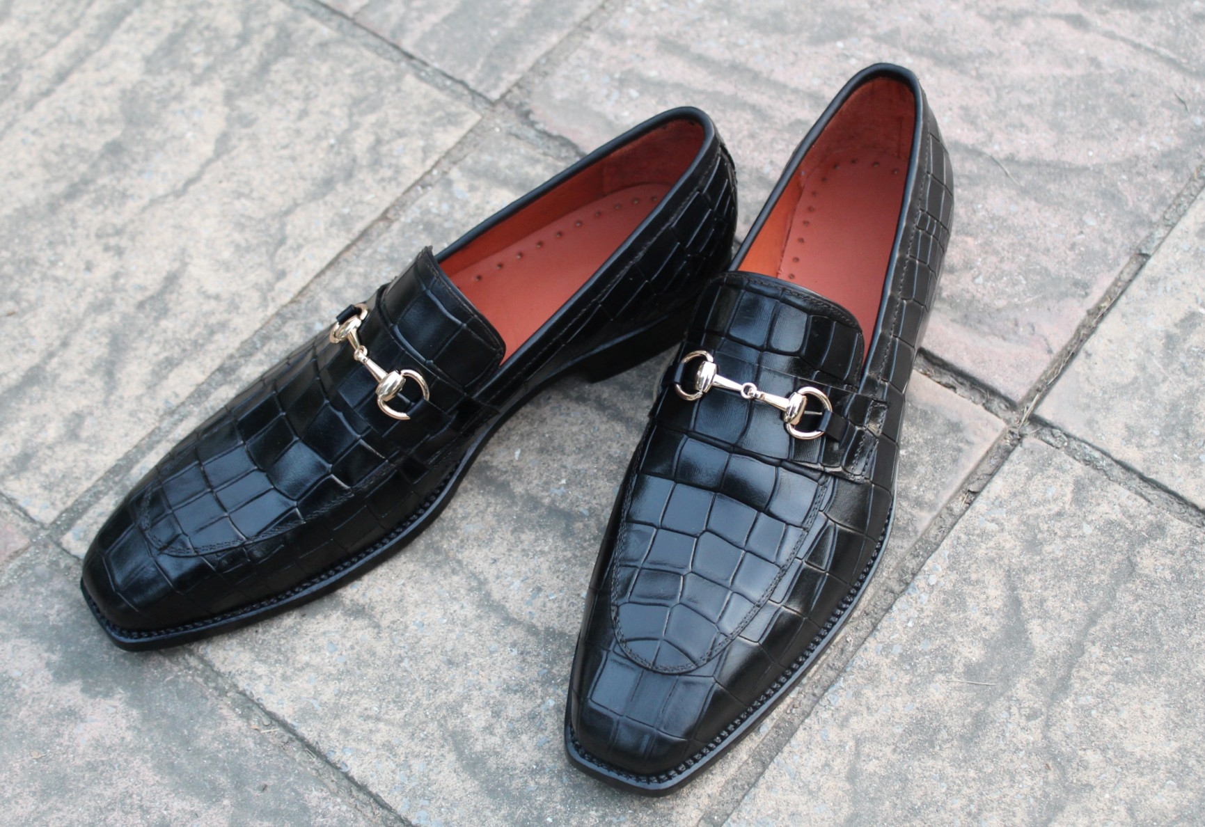Crafted Leather Classic Black Loafers Crocodile Texture Leather Moccasin Dress Shoes
