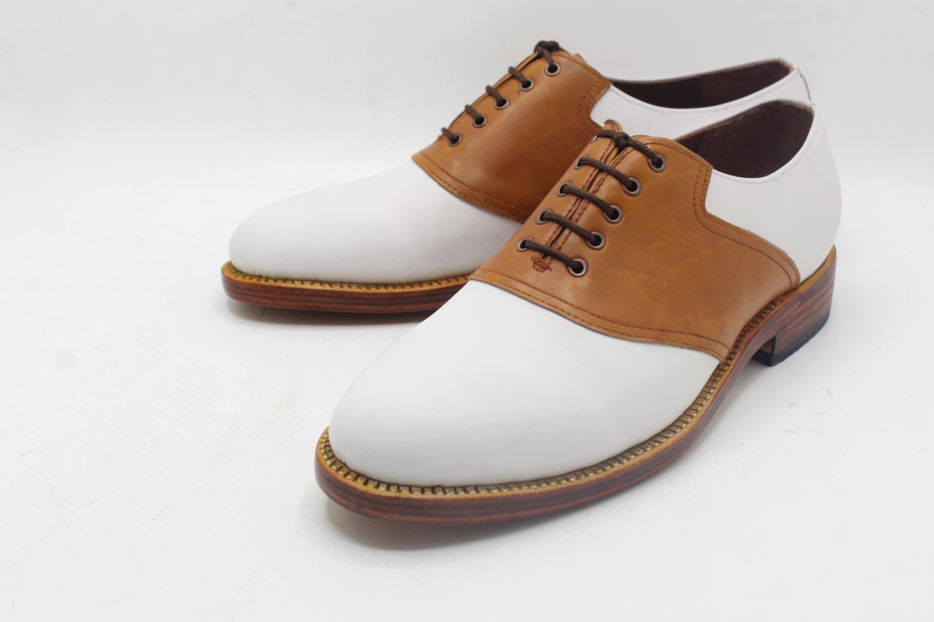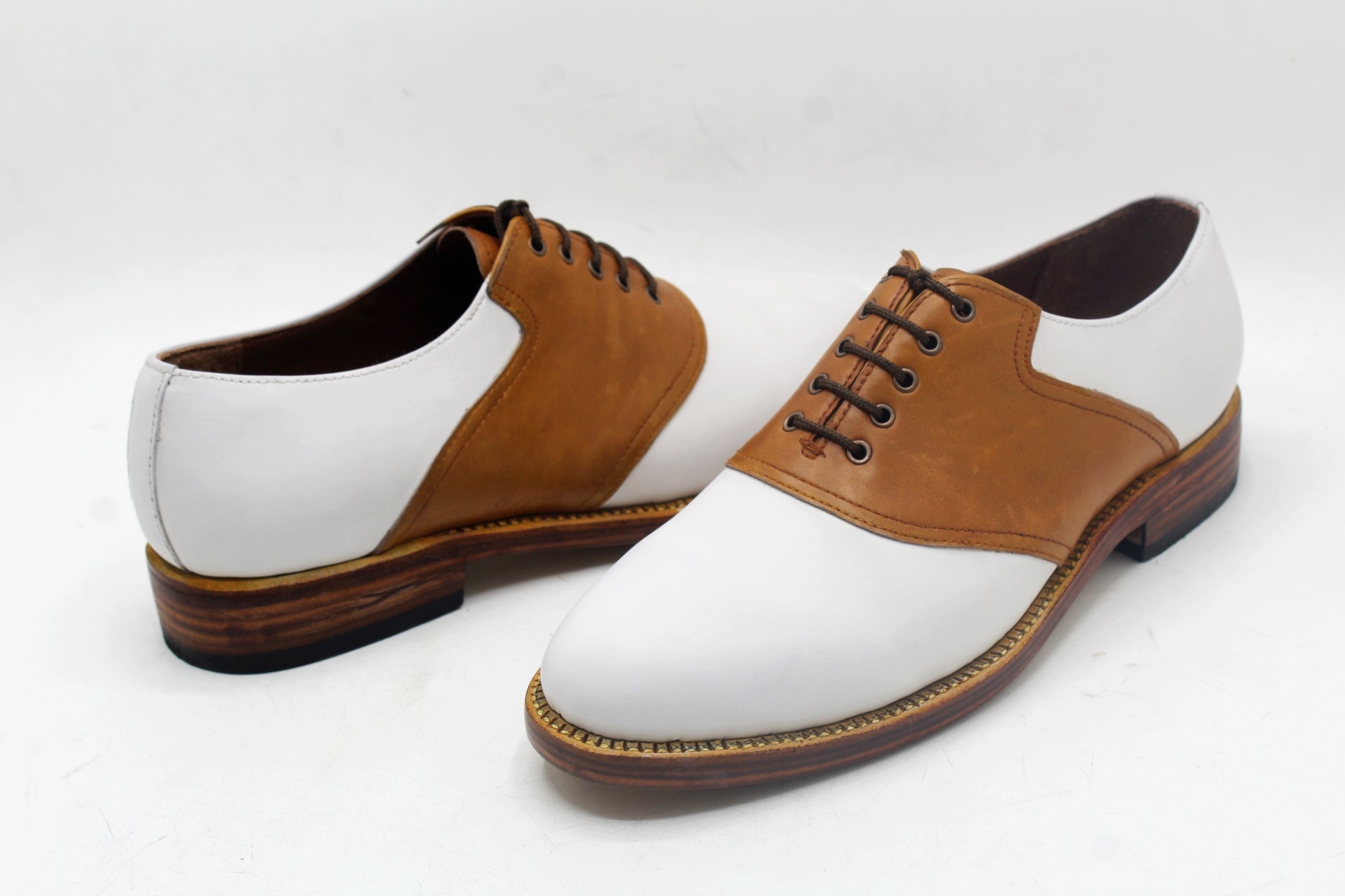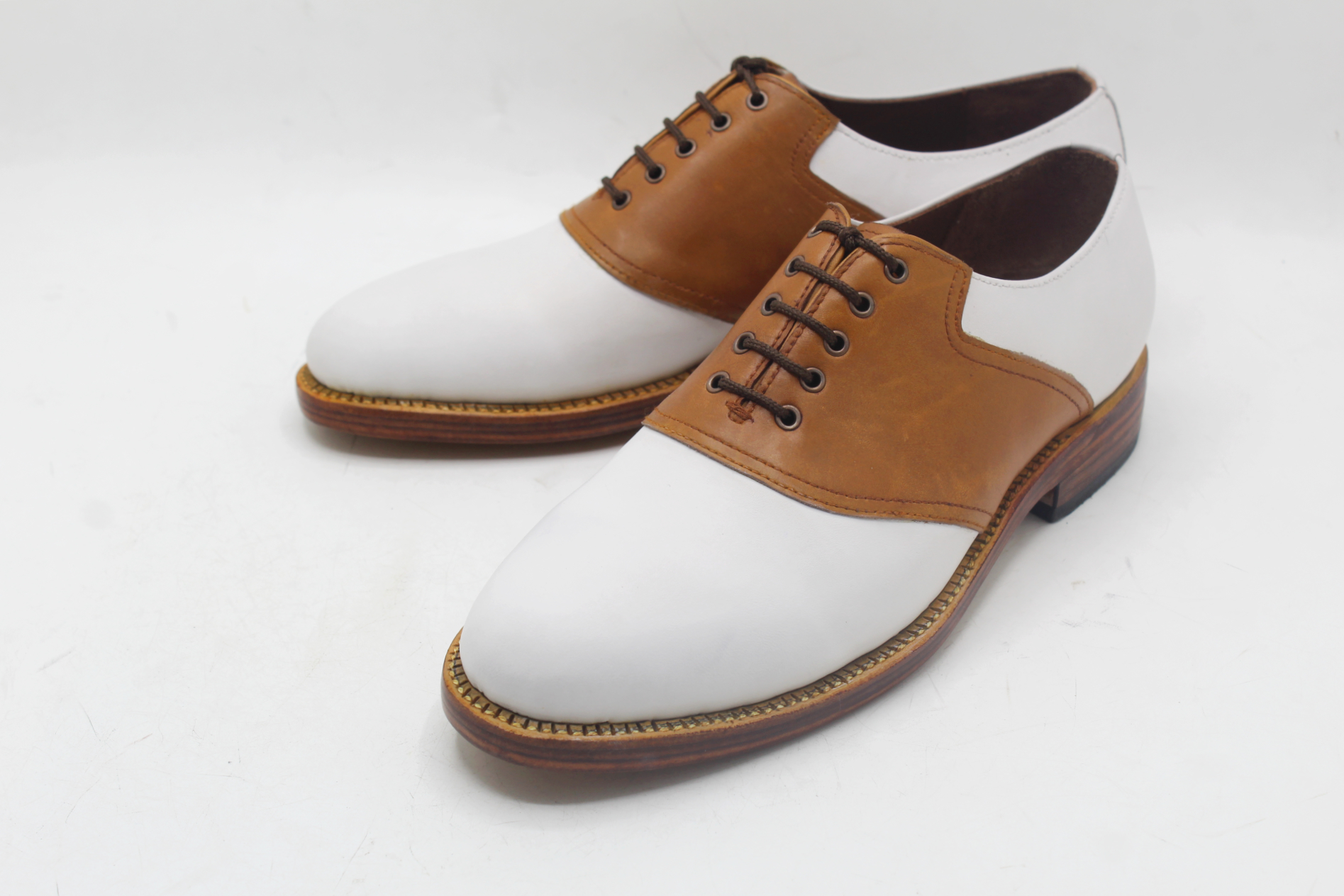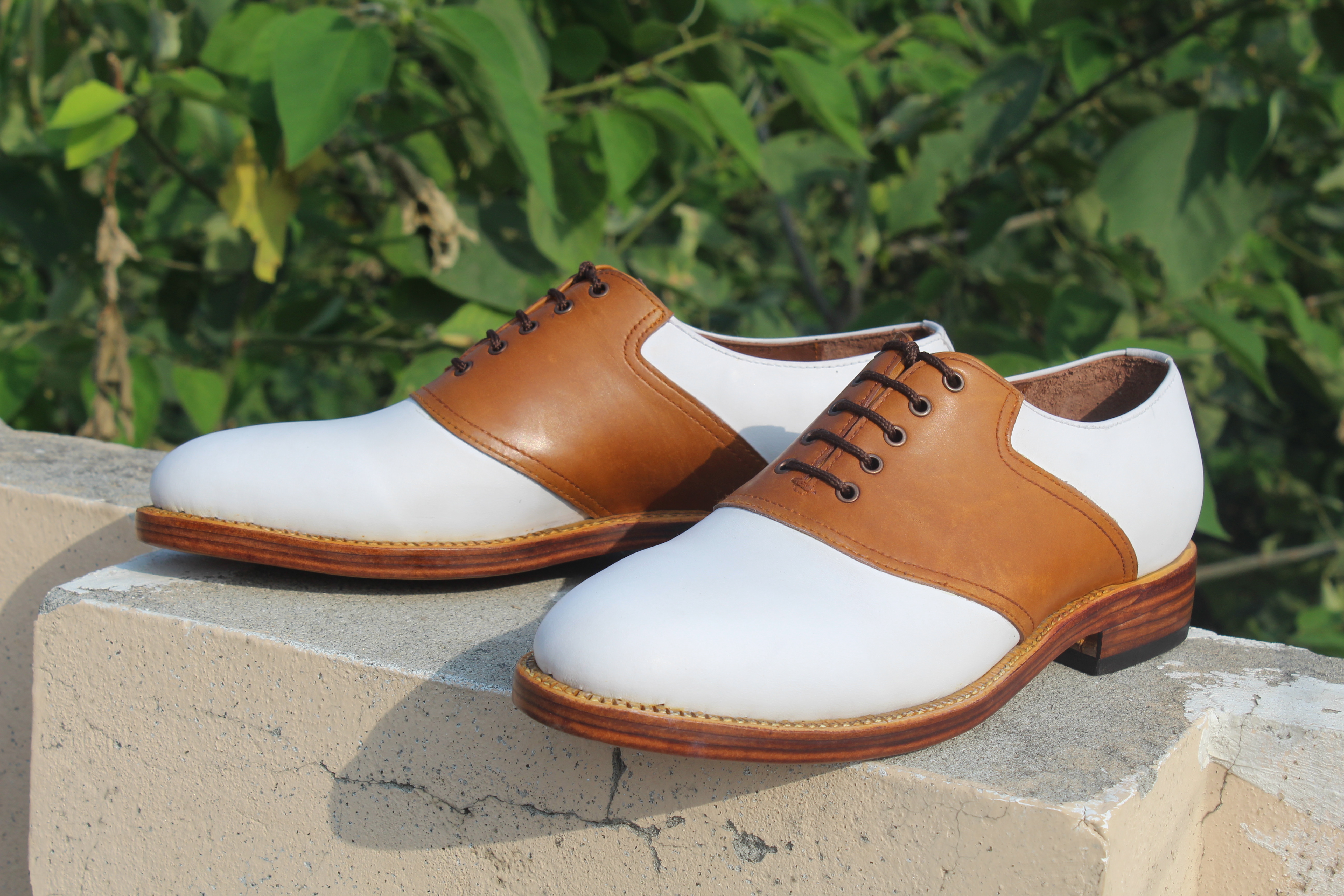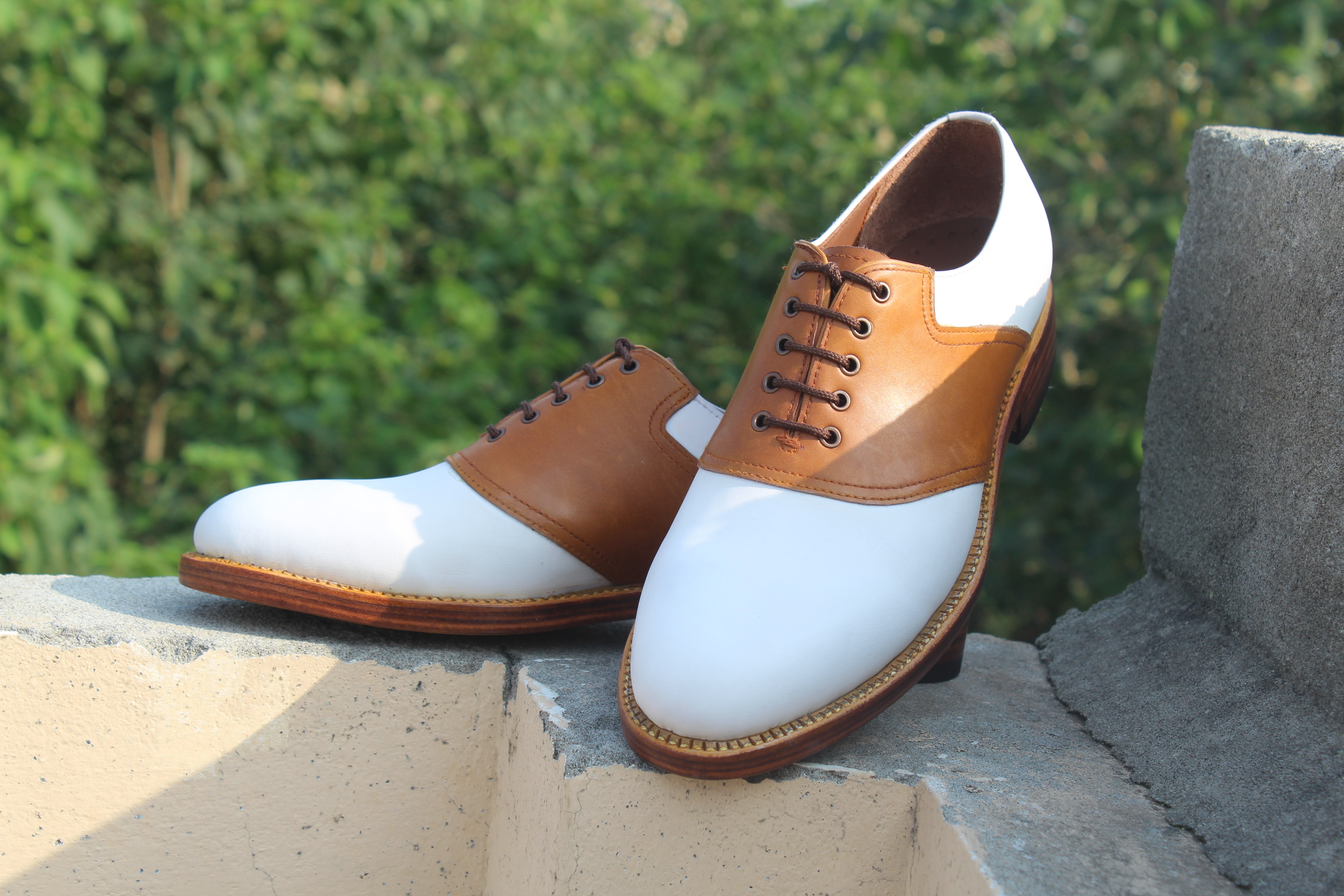 Crafted Leather Stunning Handmade Brown White Leather Oxford Dress Shoes