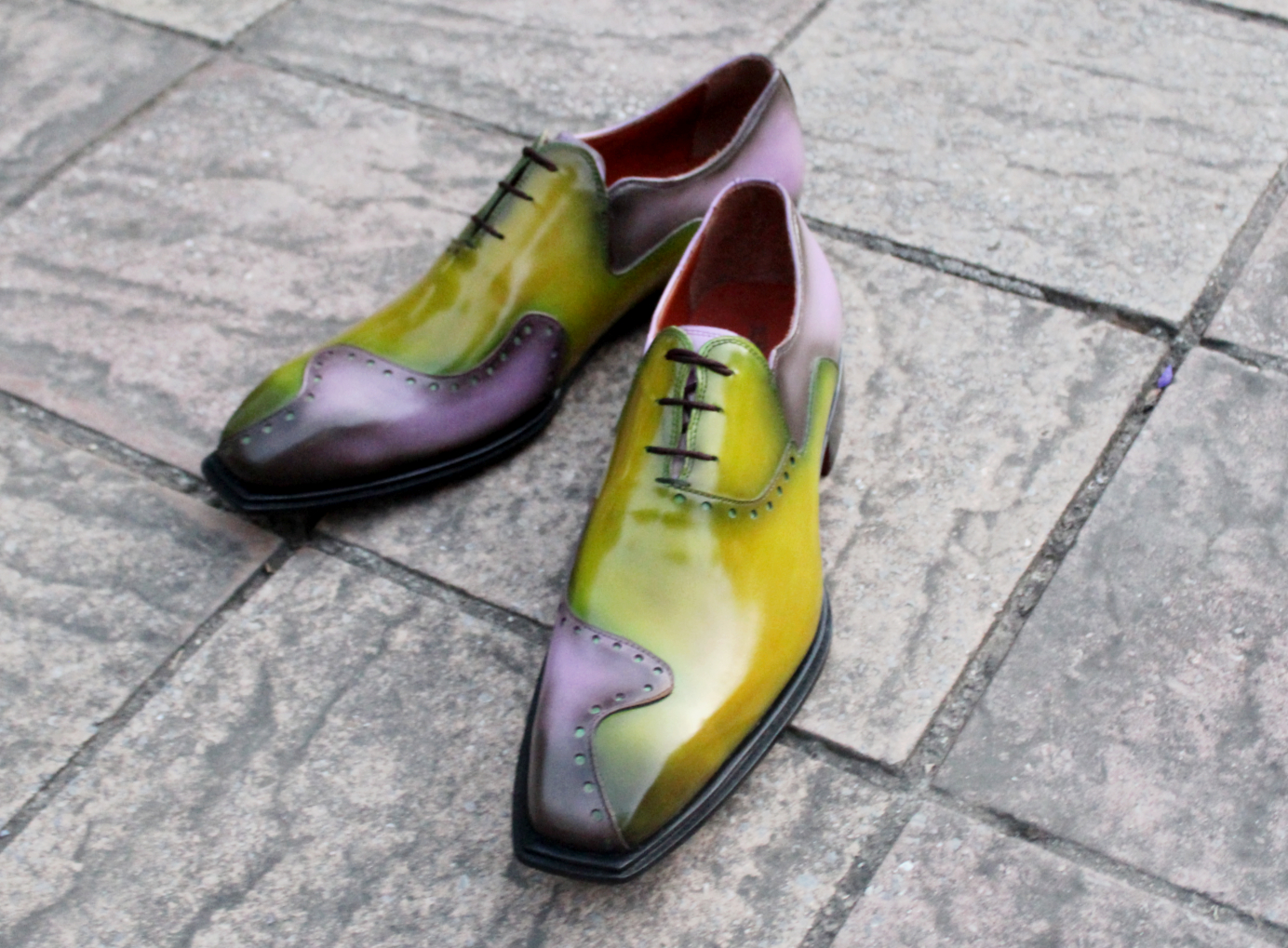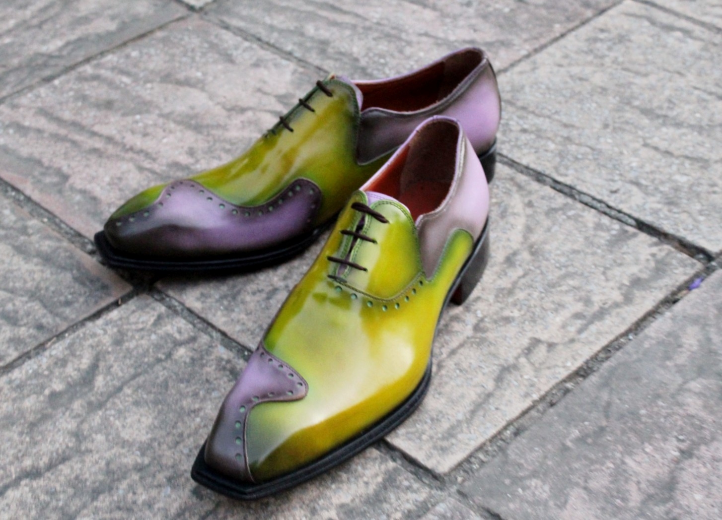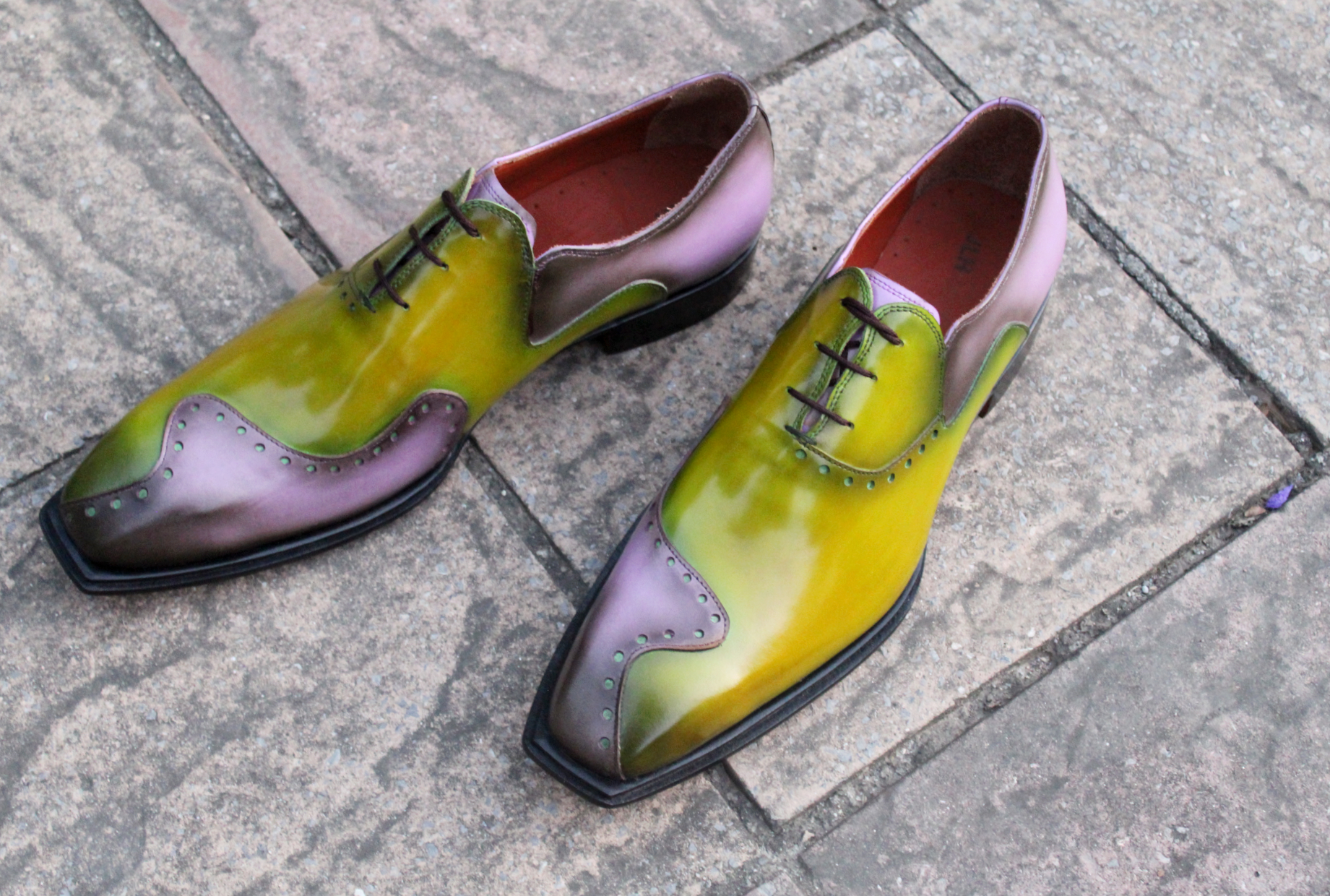 Crafted Leather Designer Purple Green Patina Leather Lace up Dress Shoes