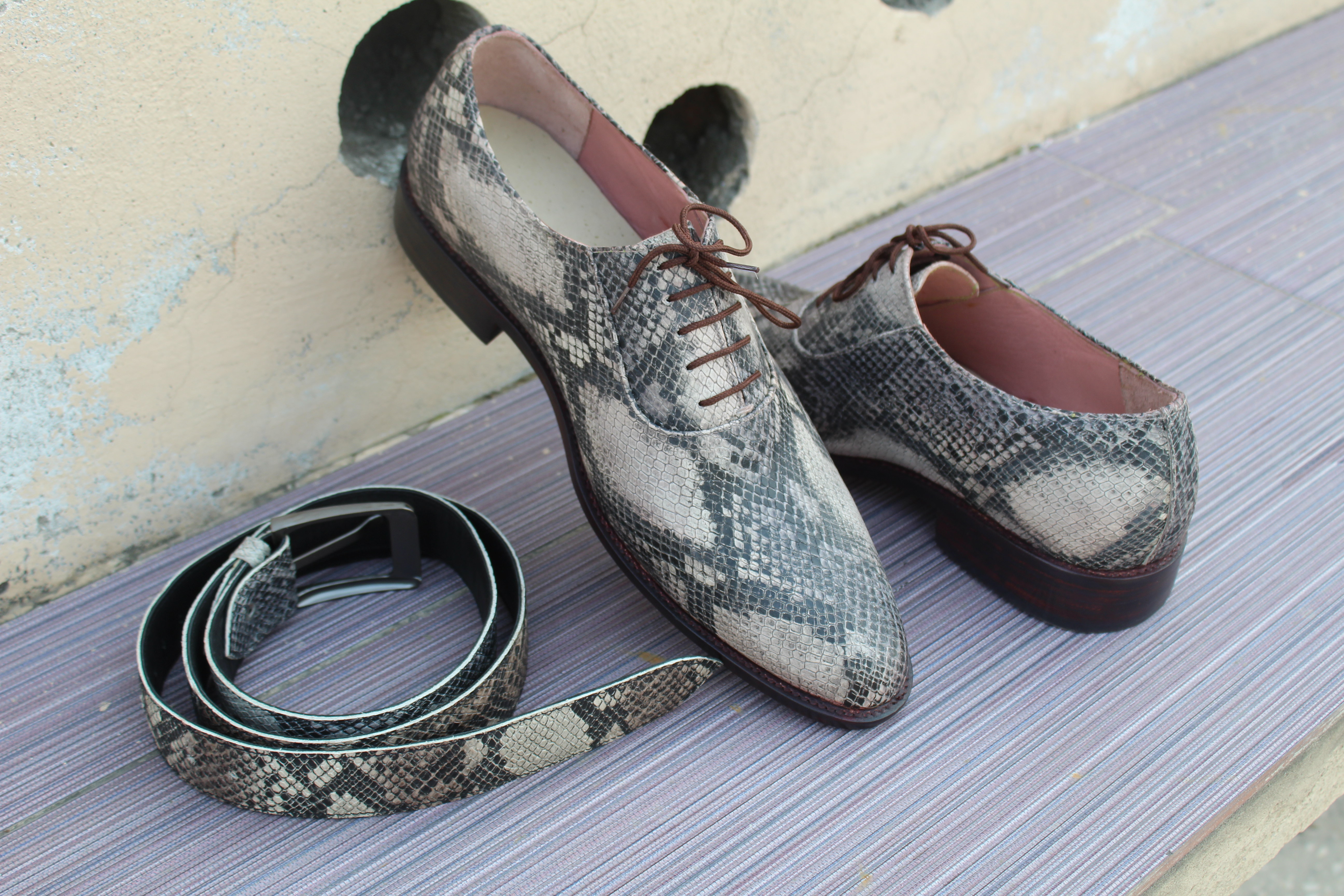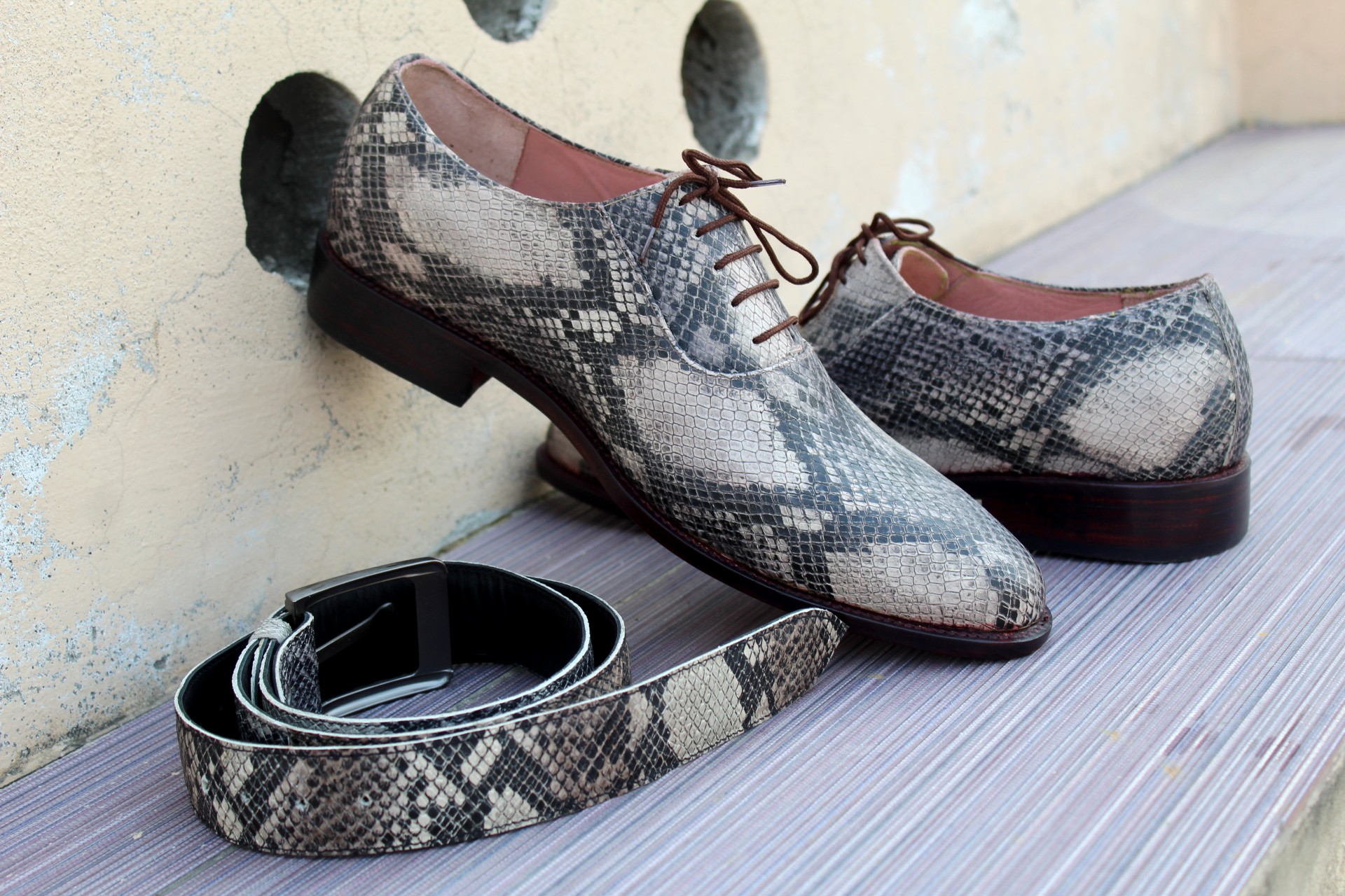 Crafted Leather Mens Natural Genuine Python Dress Shoes With Matching Belt