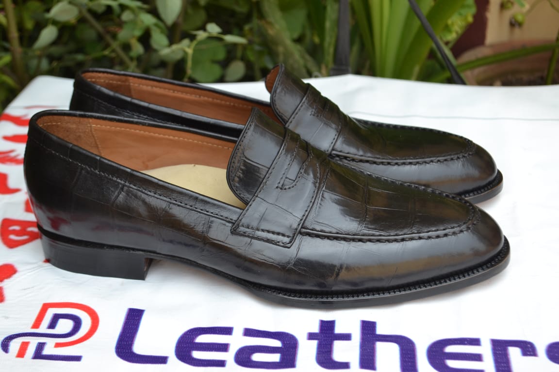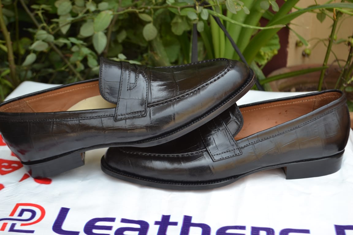 Crafted Leather Handmade Men Alligator Black Loafers Moccasin Crocodile Dress Shoes