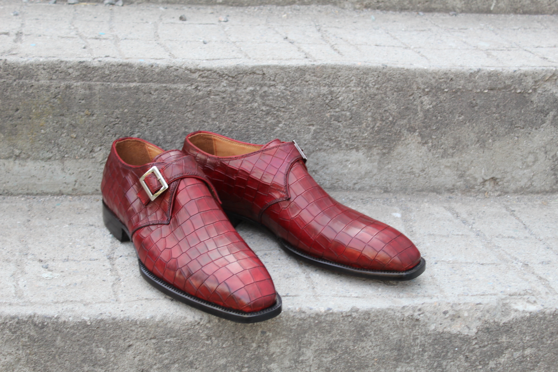 Crafted Leather Classic Red Crocodile/Alligator Monk Strap Dress Shoes