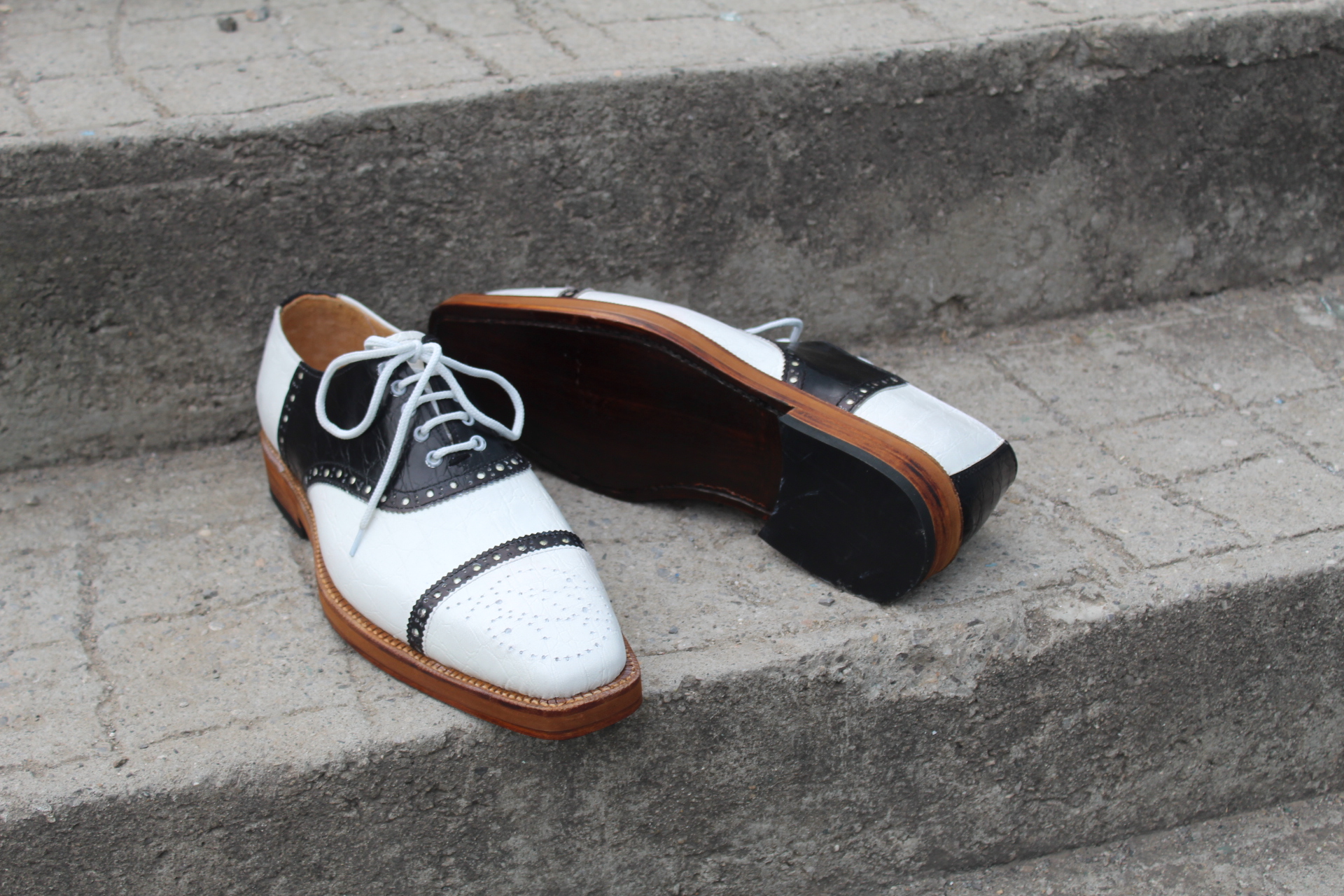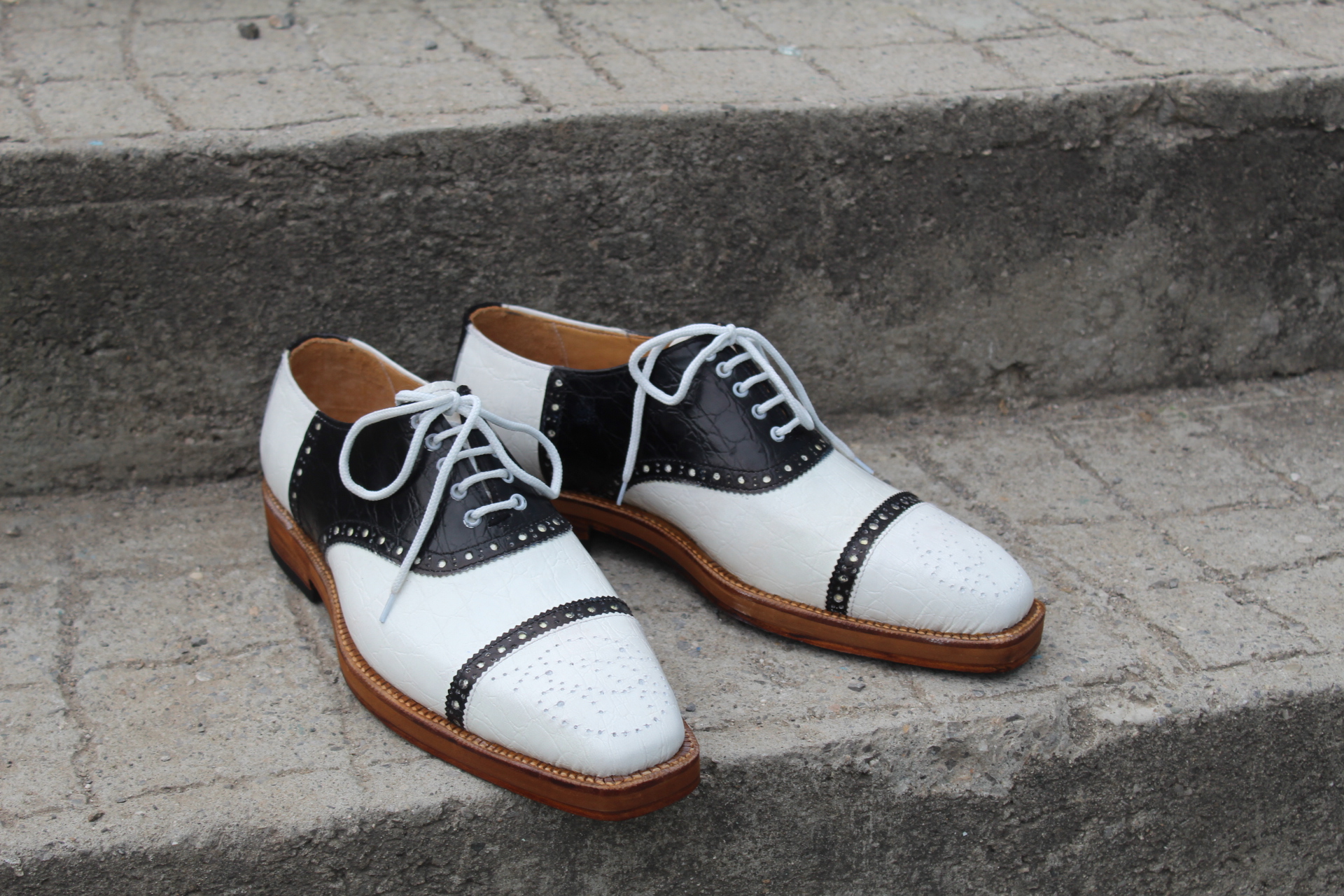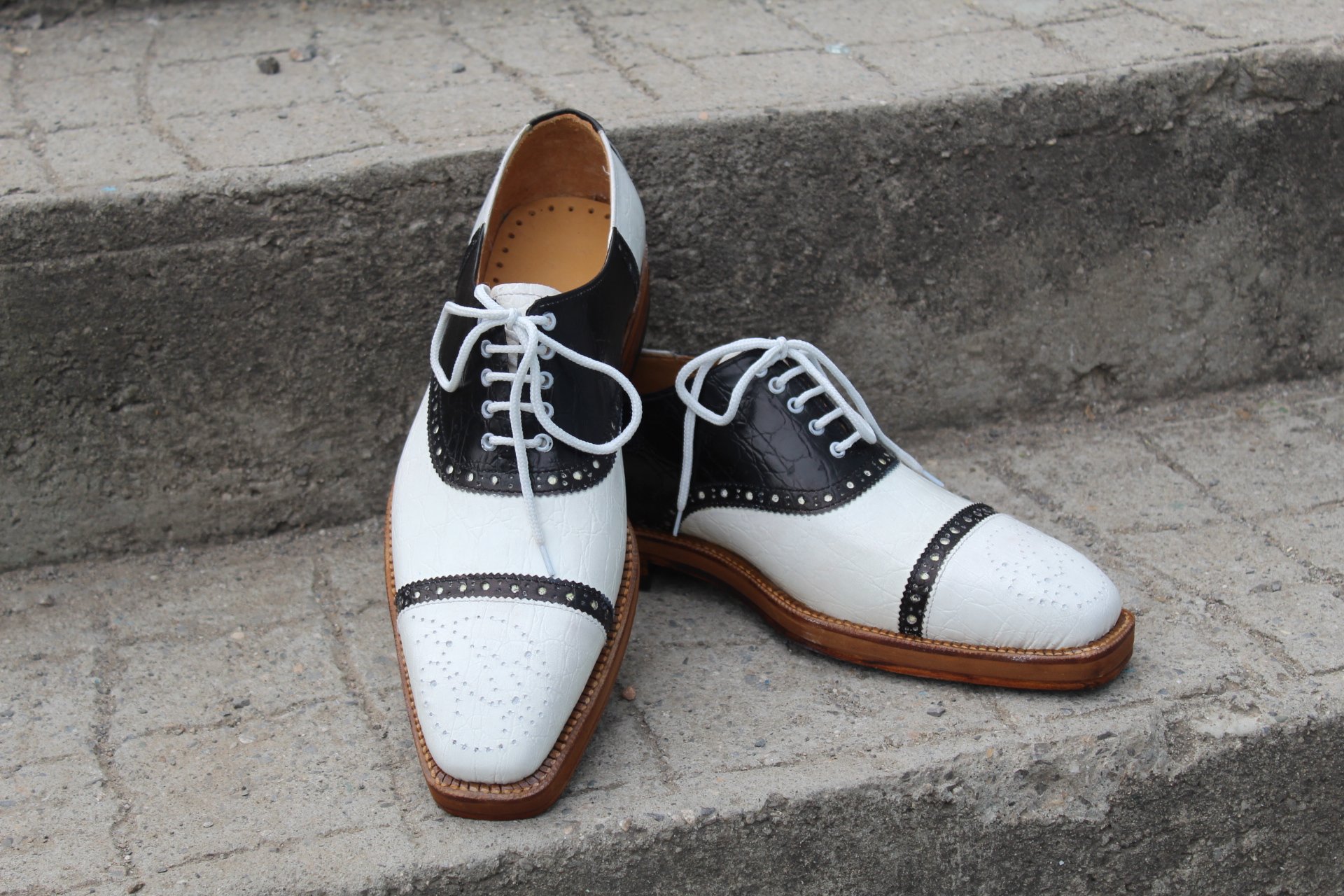 Inner: Soft Leather Sole: Leather Gender : Male Heel: Leather Color: Black / White Style: Dress Shoes Lining Soft Calf Leather Lining Totally Hand stitched Manufacturing time 7-10 business days If you can’t find your Size/Colorjust send us message we will make for you.