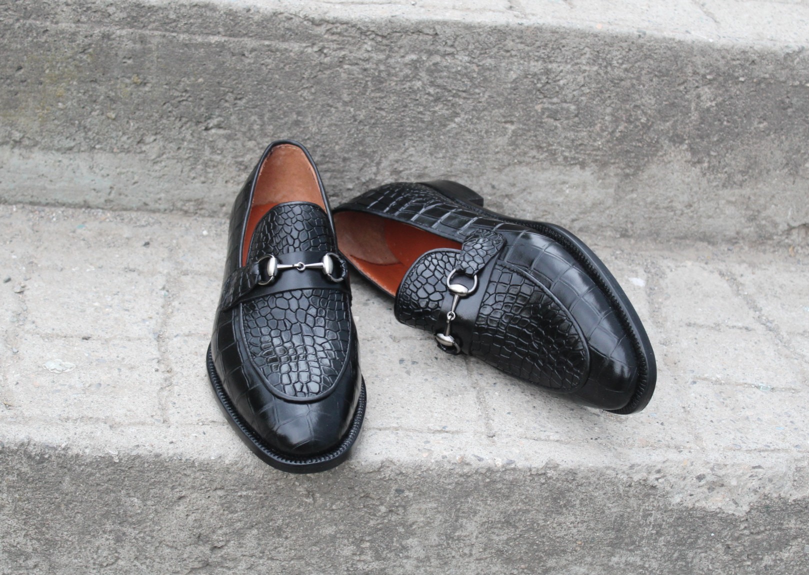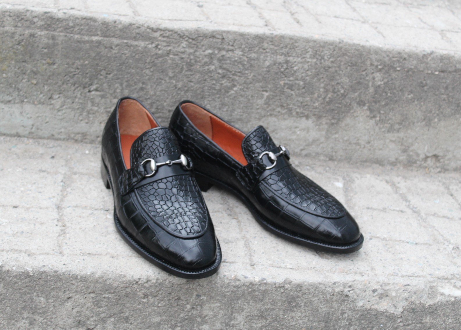Crafted Leather Classic Black Crocodile/Alligator Horsebit Loafers Dress Shoes