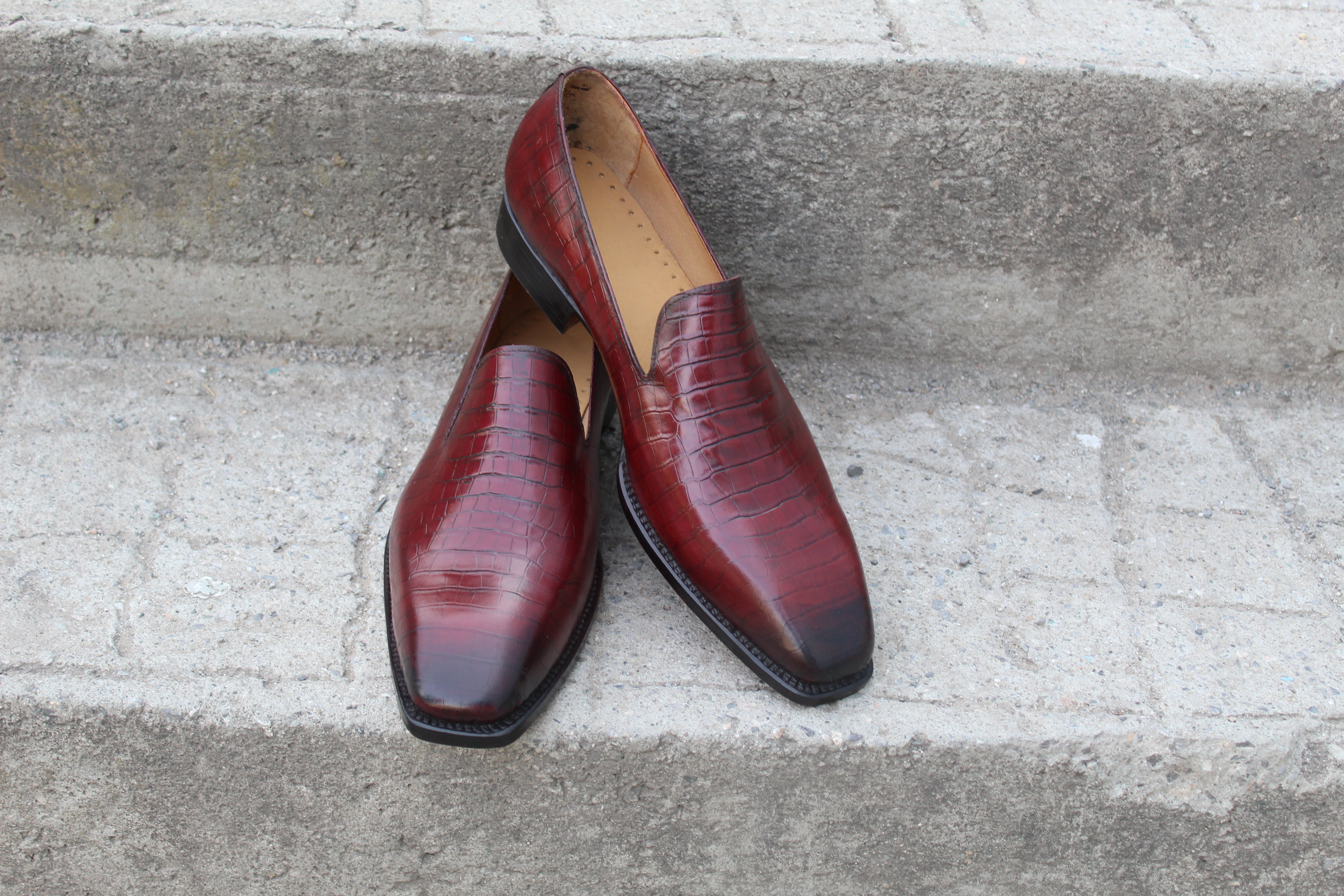 Crafted Leather Classic Brown Crocodile/Alligator Loafers Dress Shoes
